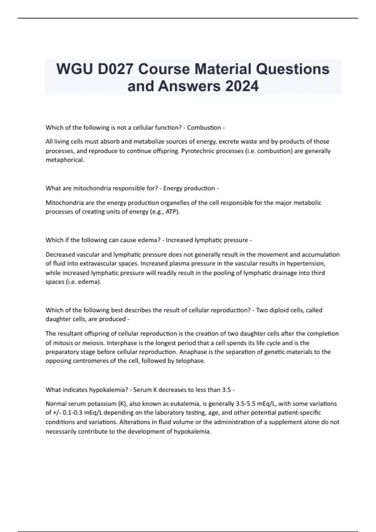 Combined WGU D027 Study Guide questions and correct solutions 100% verified