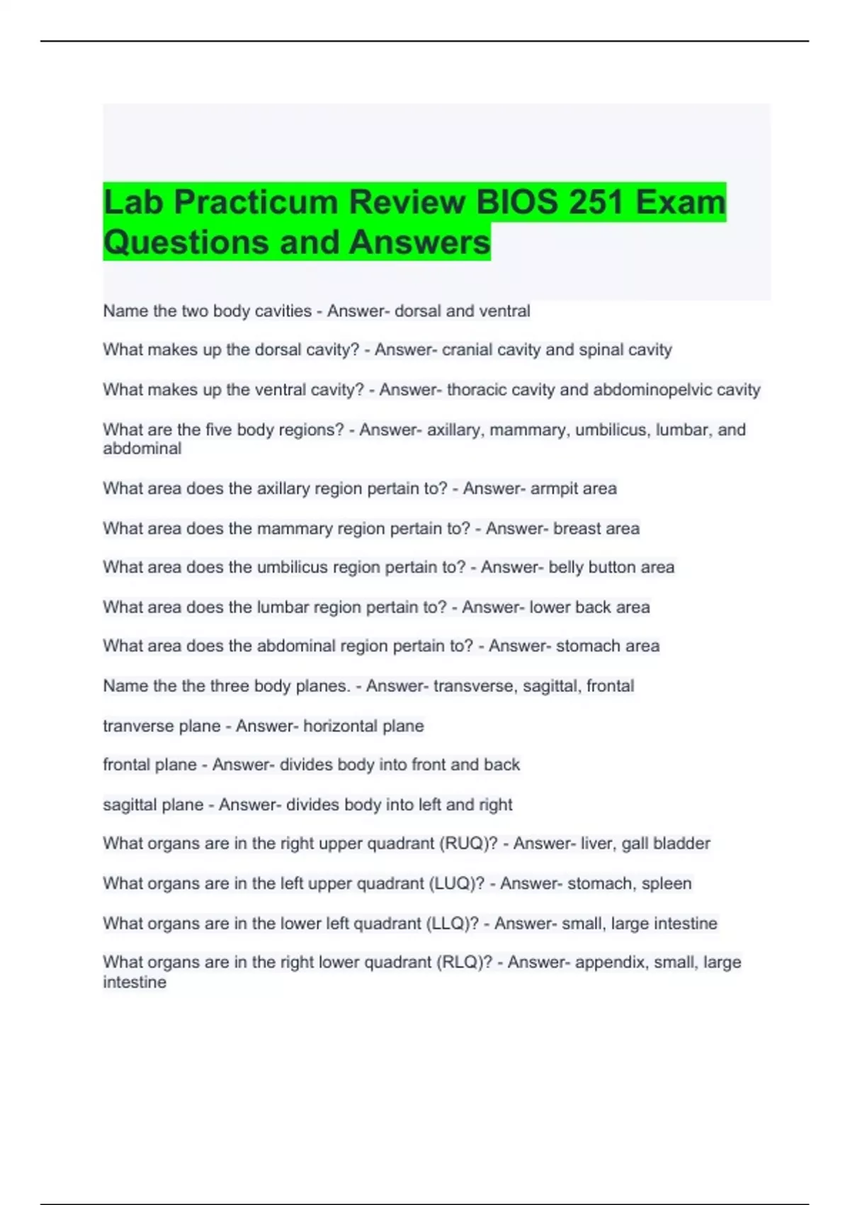Lab Practicum Review BIOS 251 Exam Questions and Answers 100% correct