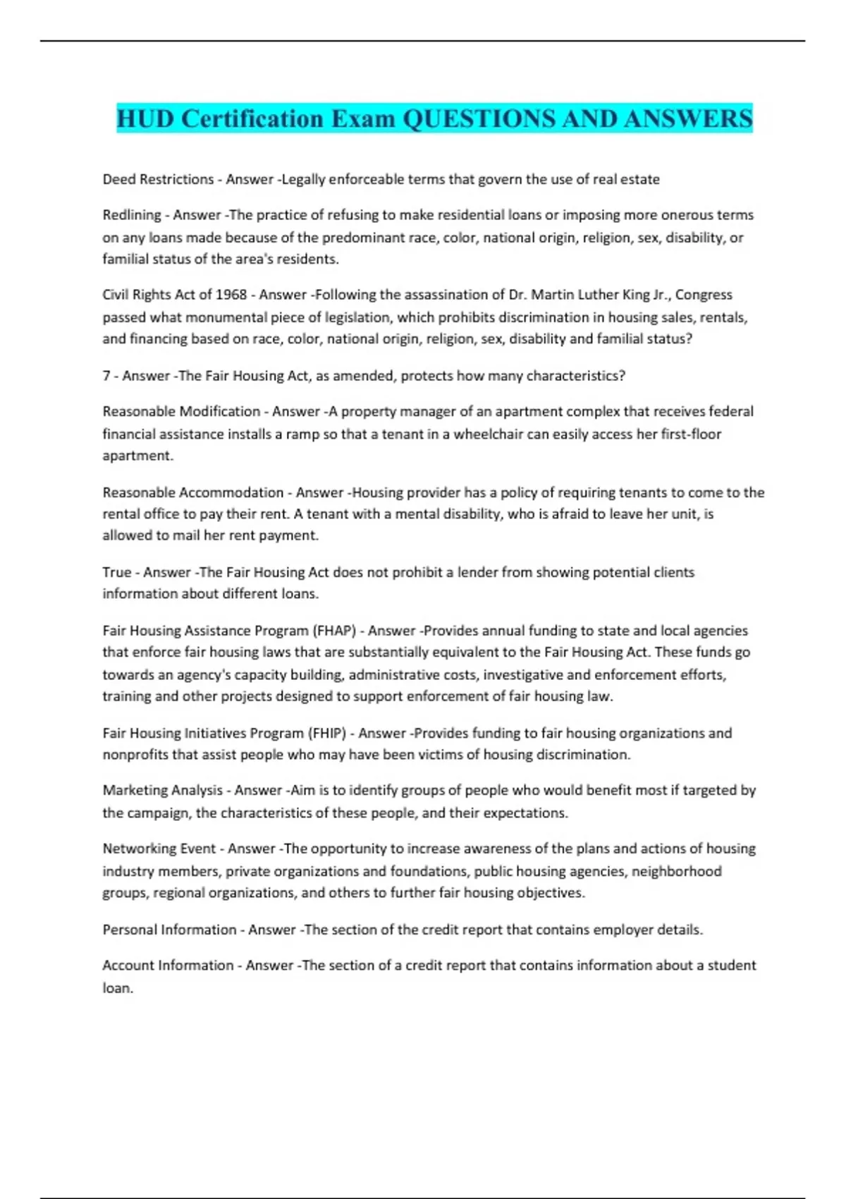 HUD Housing Counselor Certification COMPLETE BUNDLED 2024 Update. Already Passed!!