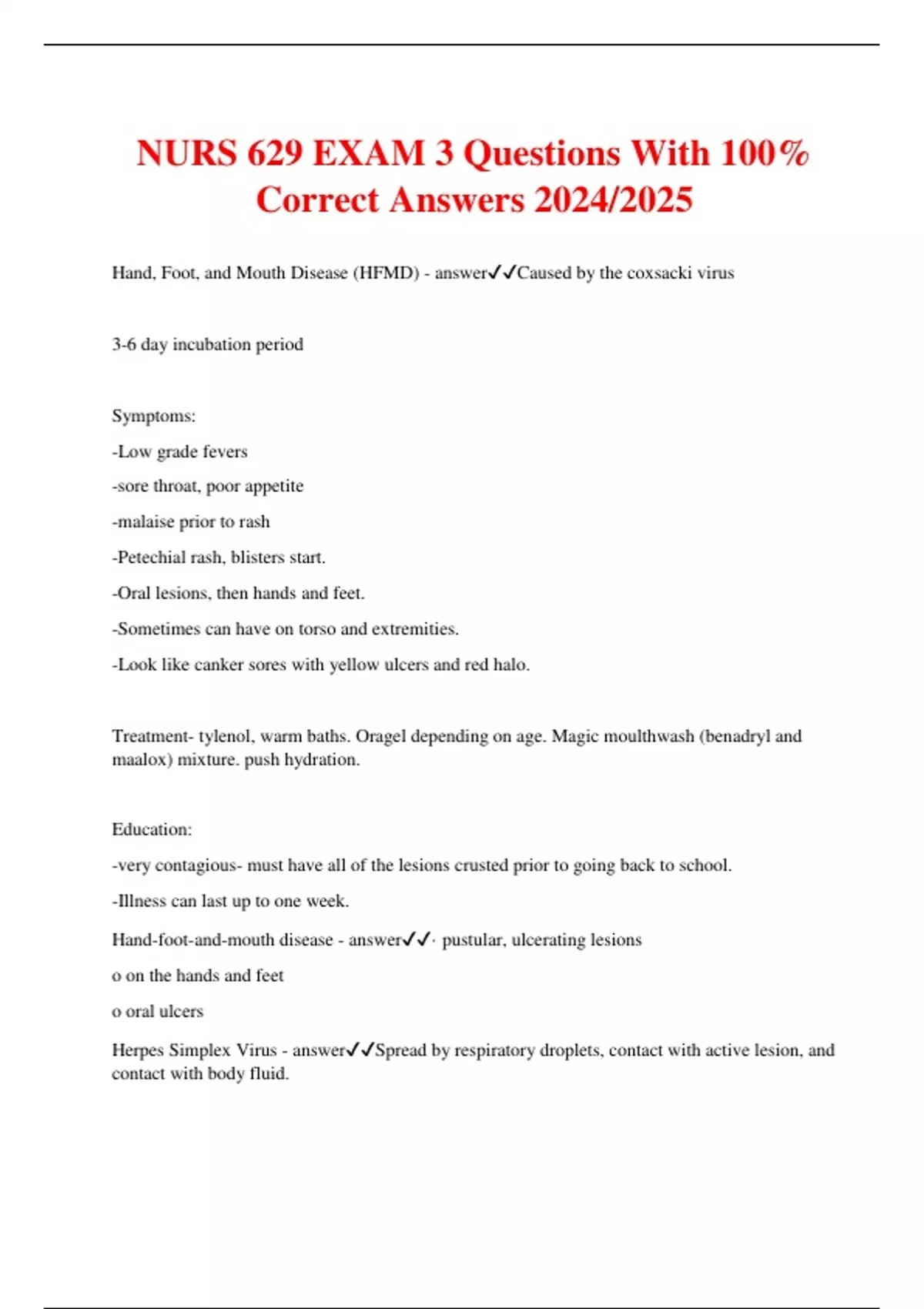 NURS 629 Peds Exam 3 Infectious Disease Questions And Answers 2024/2025