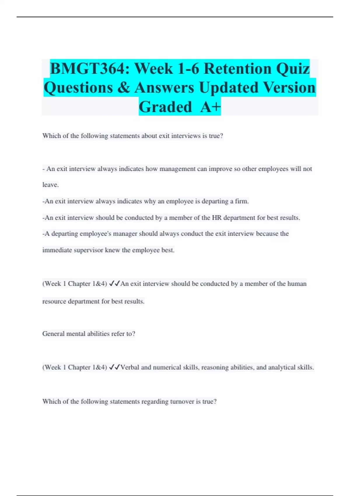 BMGT364: Week 1-6 Retention Quiz Questions & Answers Updated Version Graded A+