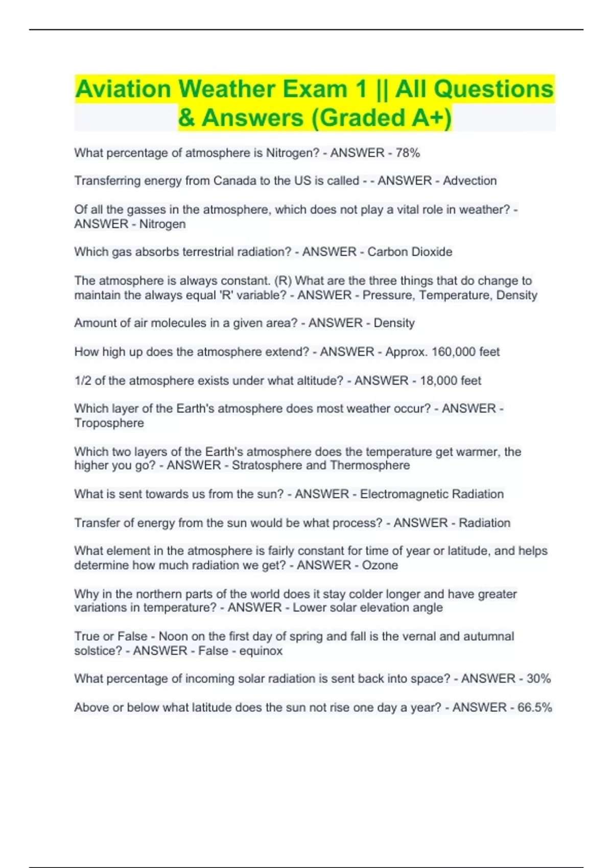 Aviation Weather Comprehensive Exam BUNDLE || With All Questions & Solutions (Expert Rated A+) Aviation Weather Comprehensive Exam BUNDLE || With All Questions & Solutions (Expert Rated A+)