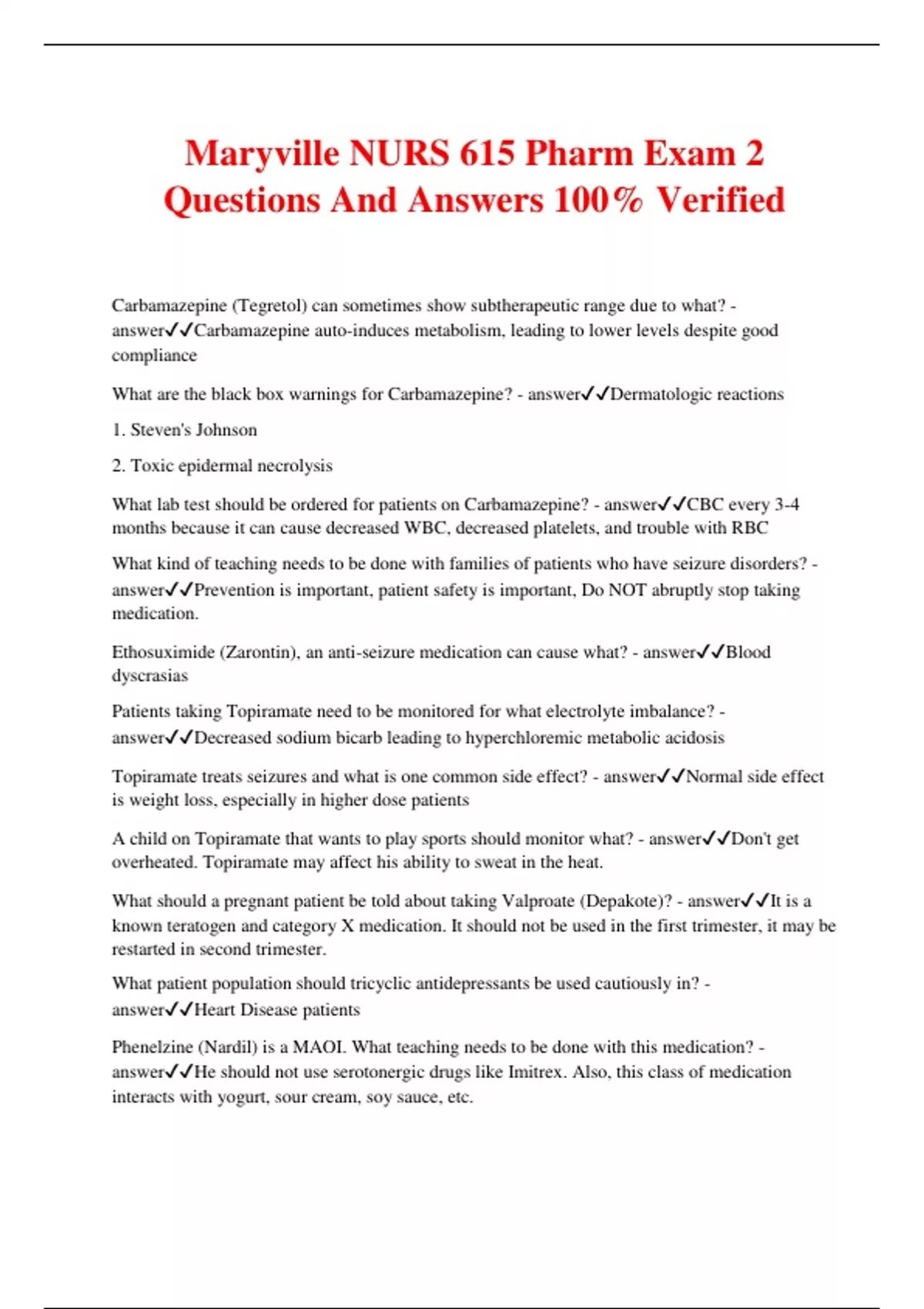 Maryville NUR 615 Bundled Exams with complete solutions