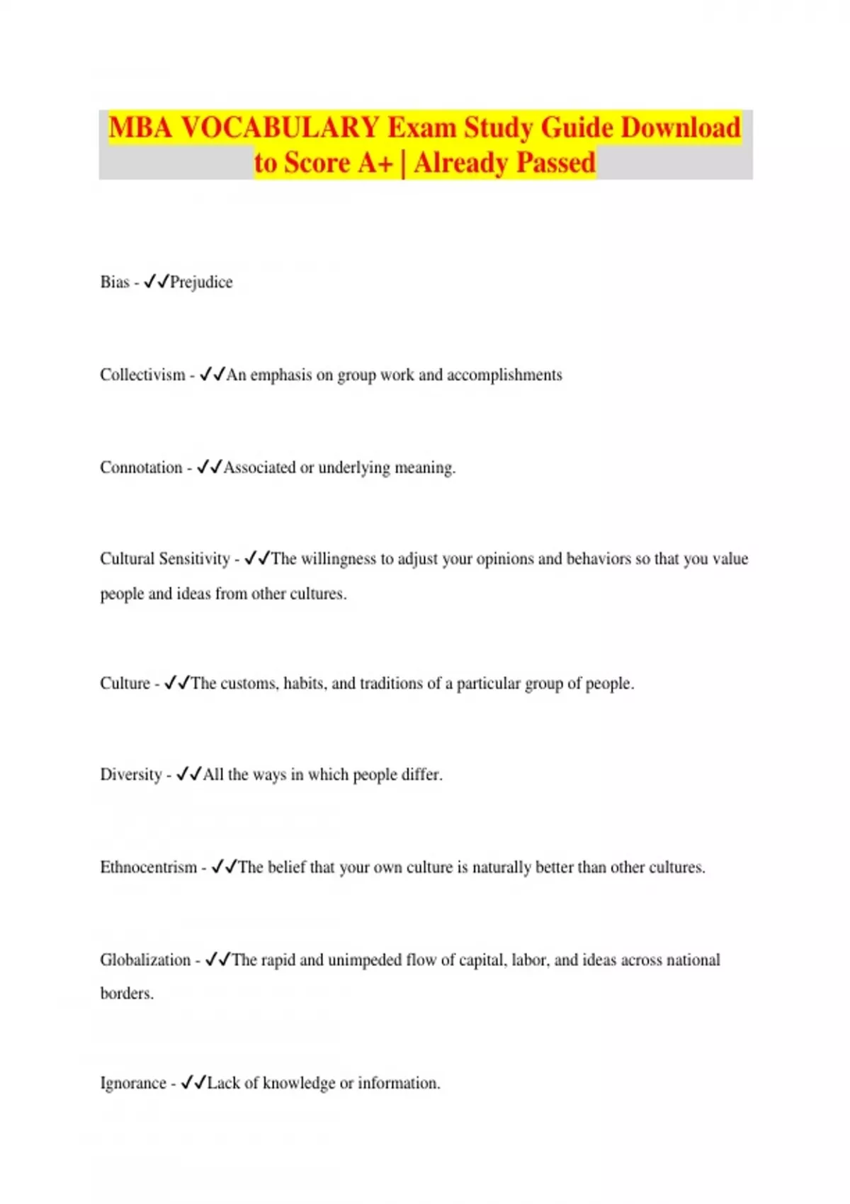 MBA VOCABULARY Exam Download to Score A+ | Already Passed