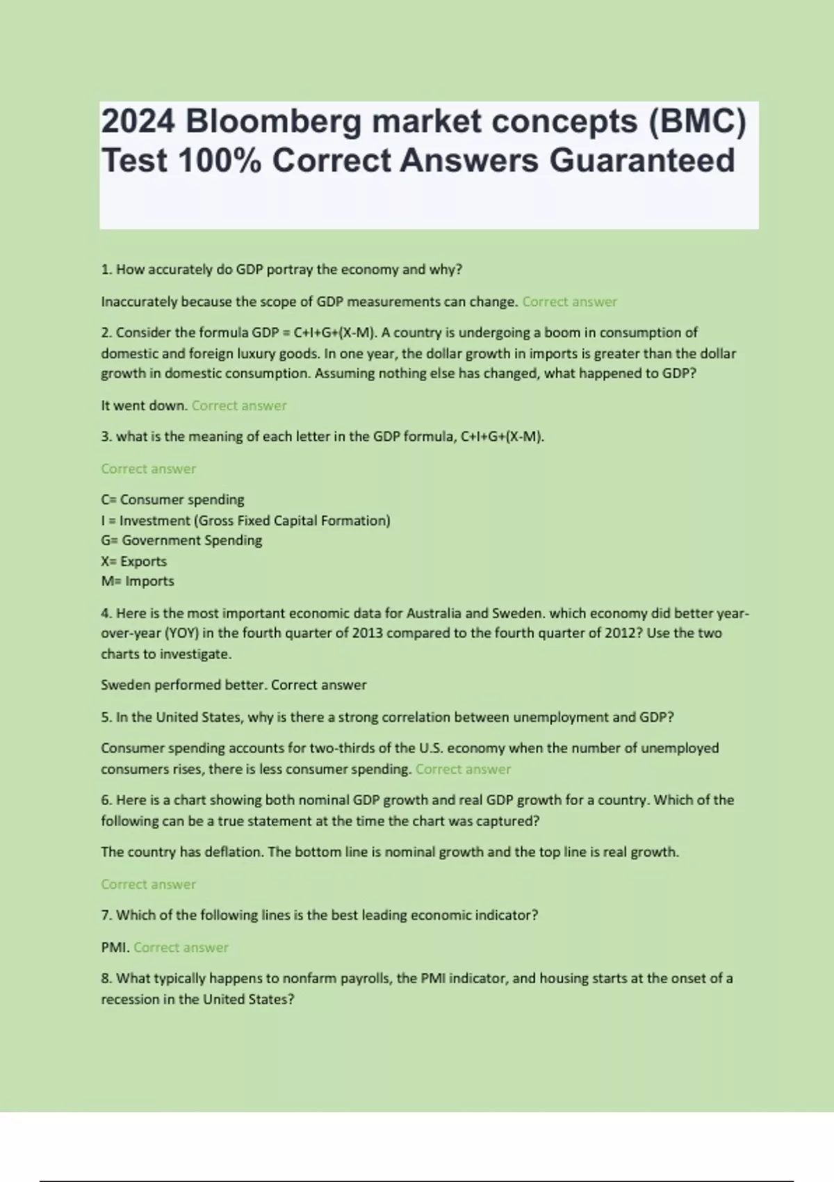 2024 Bloomberg market concepts (BMC) Test Full Course Package Deal With Complete Solutions