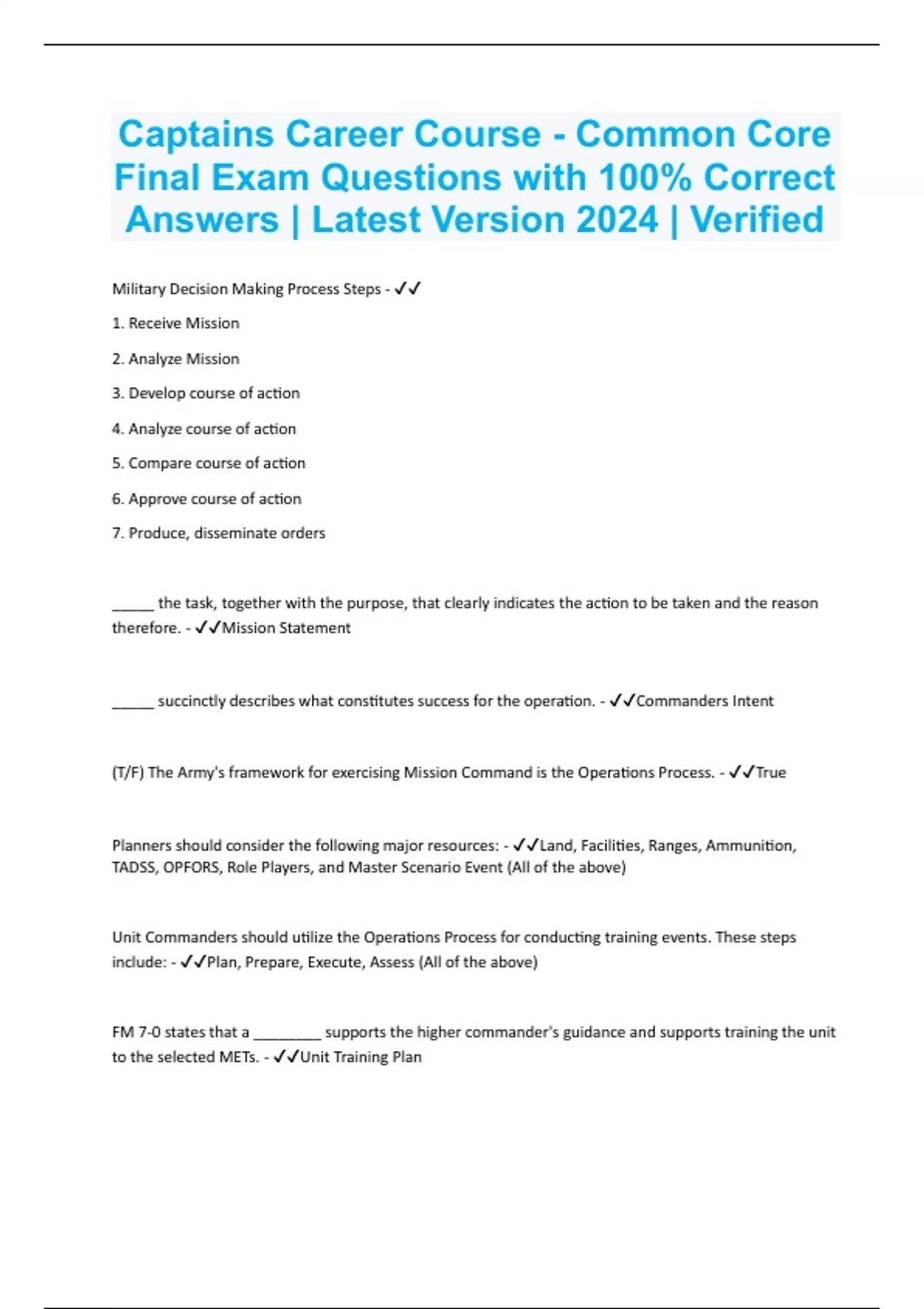 Captains Career Course - Common Core Final Exam Questions with 100% Correct Answers | Latest Version 2024 | Verified