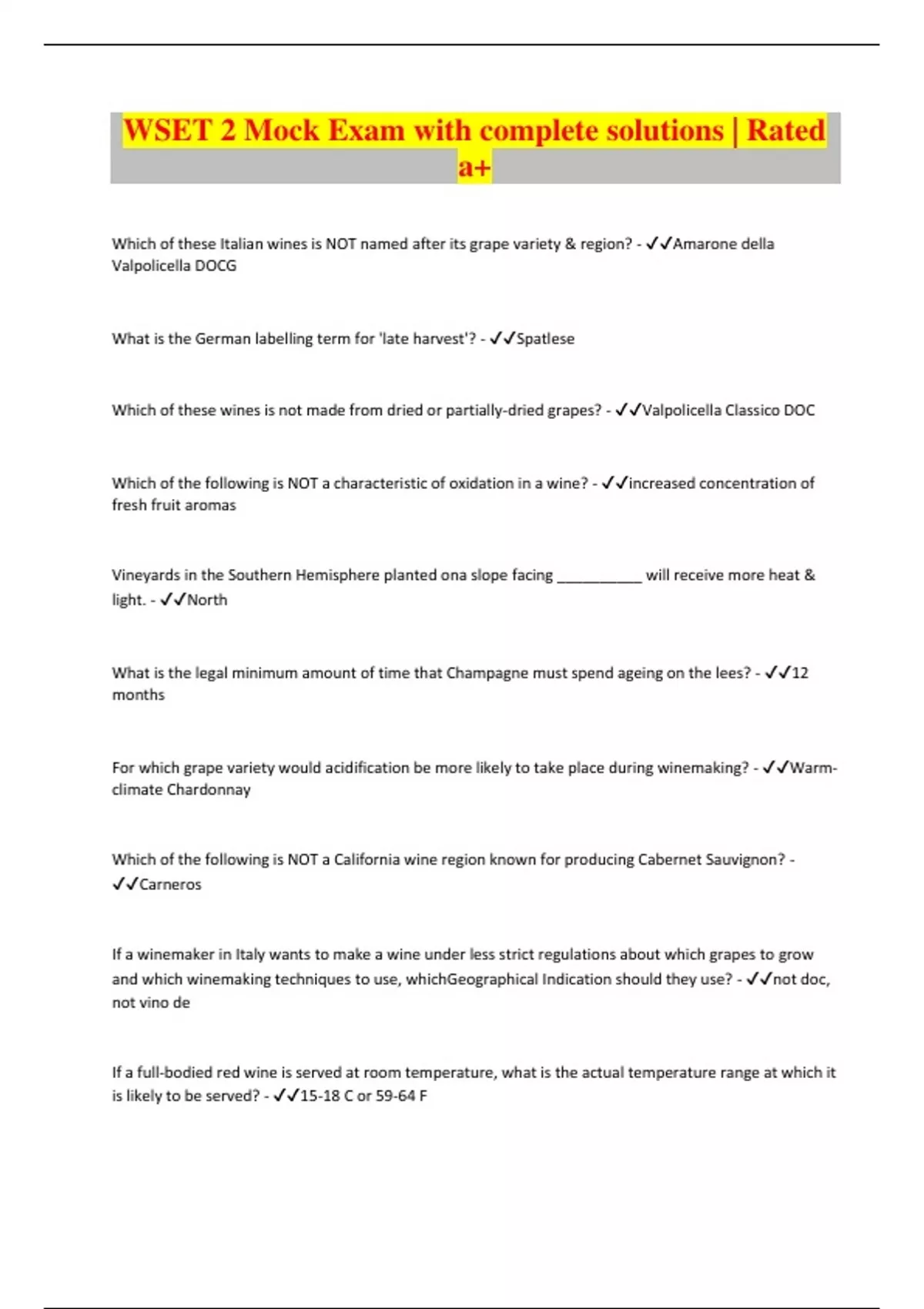 WSET 2 Mock Exam with complete solutions | Rated a+