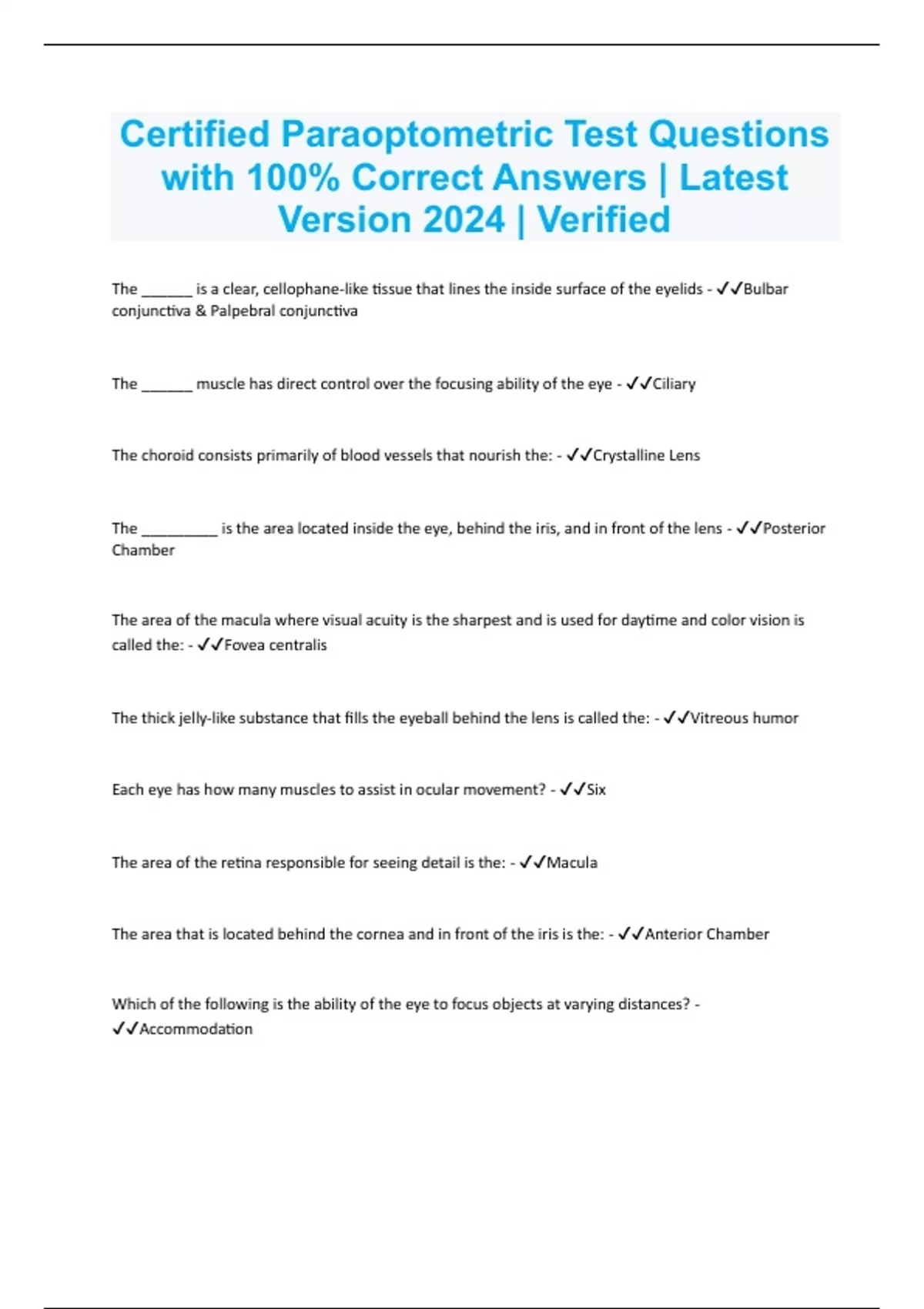 Certified Paraoptometric Exam Questions with 100% Correct Answers | Latest Version 2024 | Verified