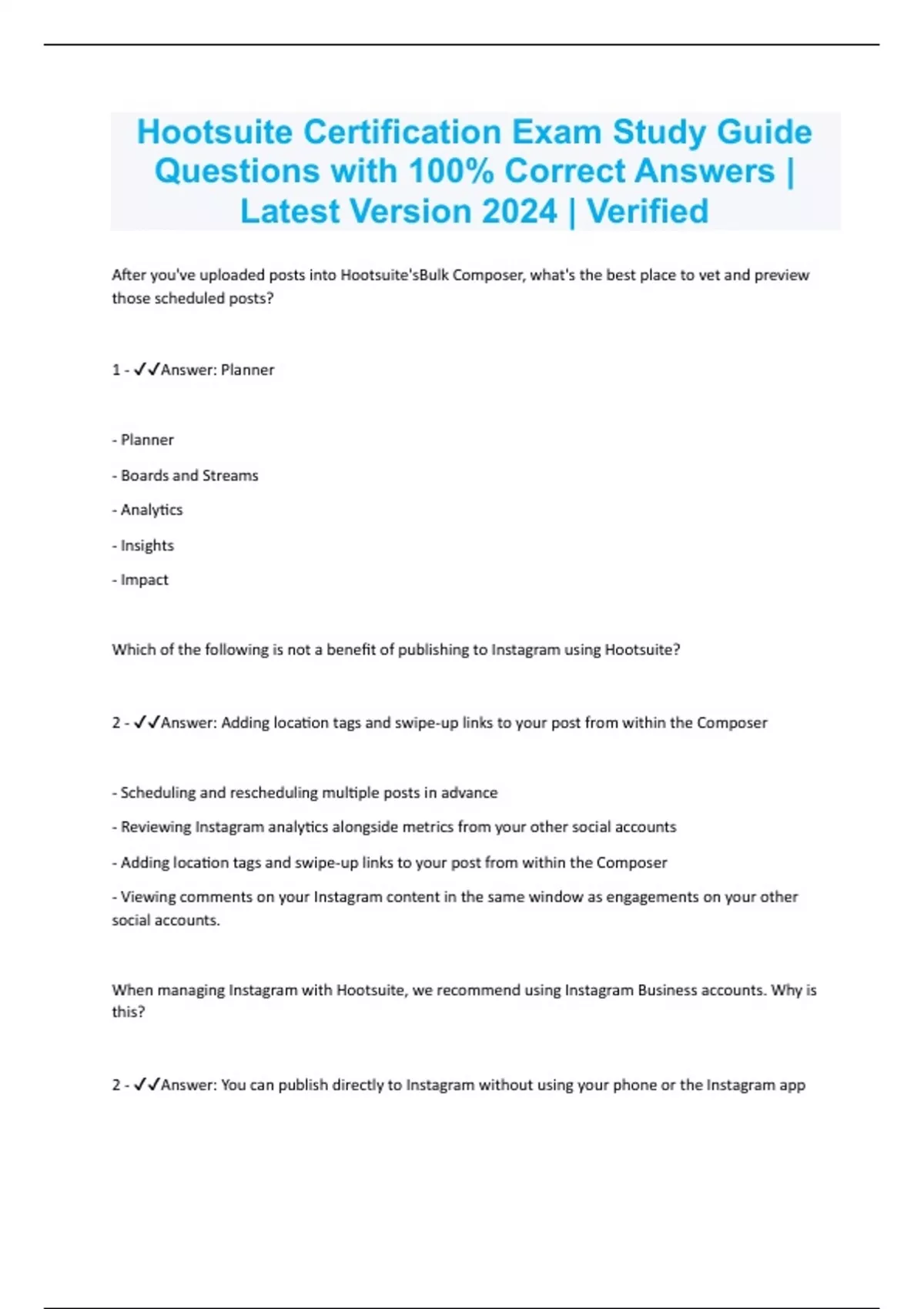 Hootsuite Platform Certification Study Guide Questions with 100% Correct Answers | Latest Version 2024 | Verified