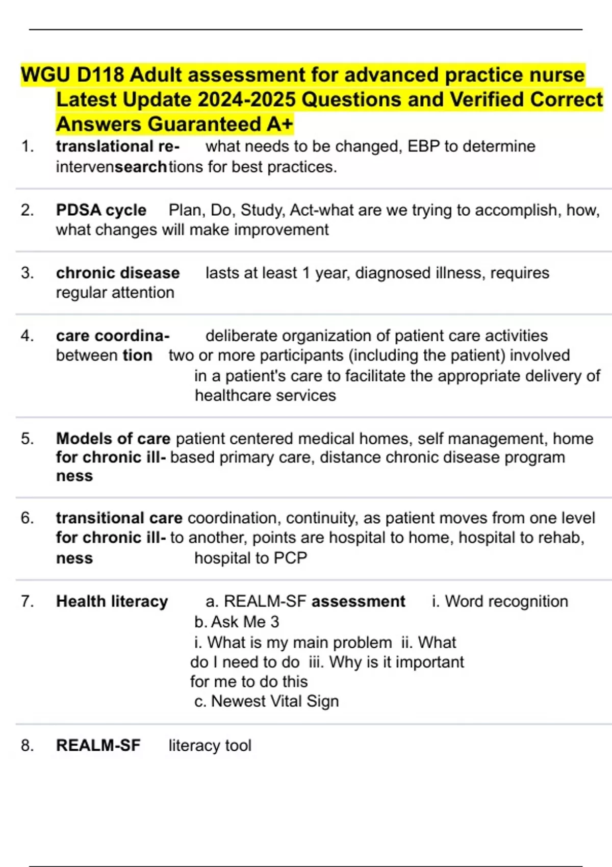 WGU D118 ADULT PRIMARY CARE EXAMS LATEST UPDATE