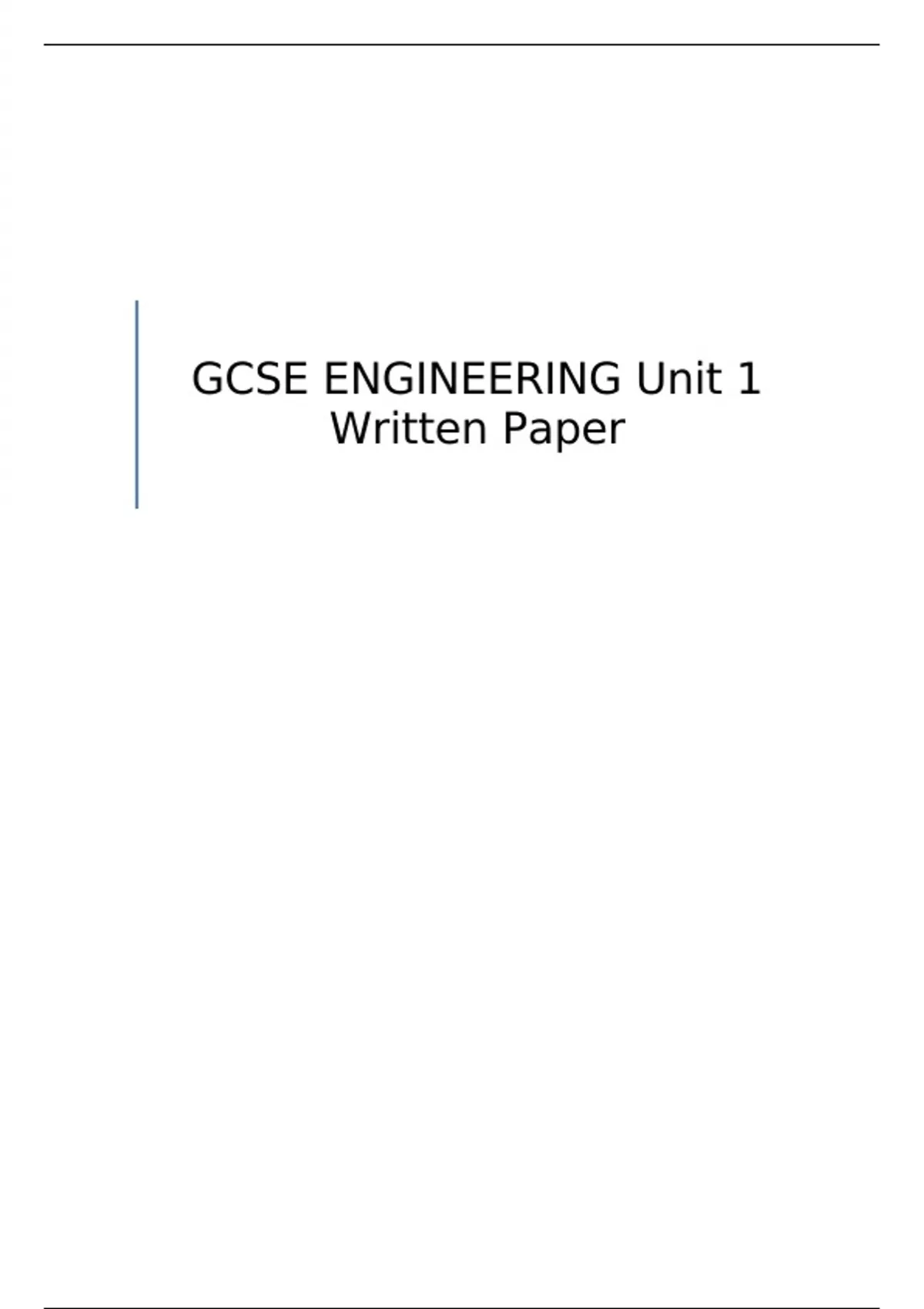 GCSE ENGINEERING Unit 1 Written Paper QUESTION PAPER AND MARK SCHEME FOR JUNE /W