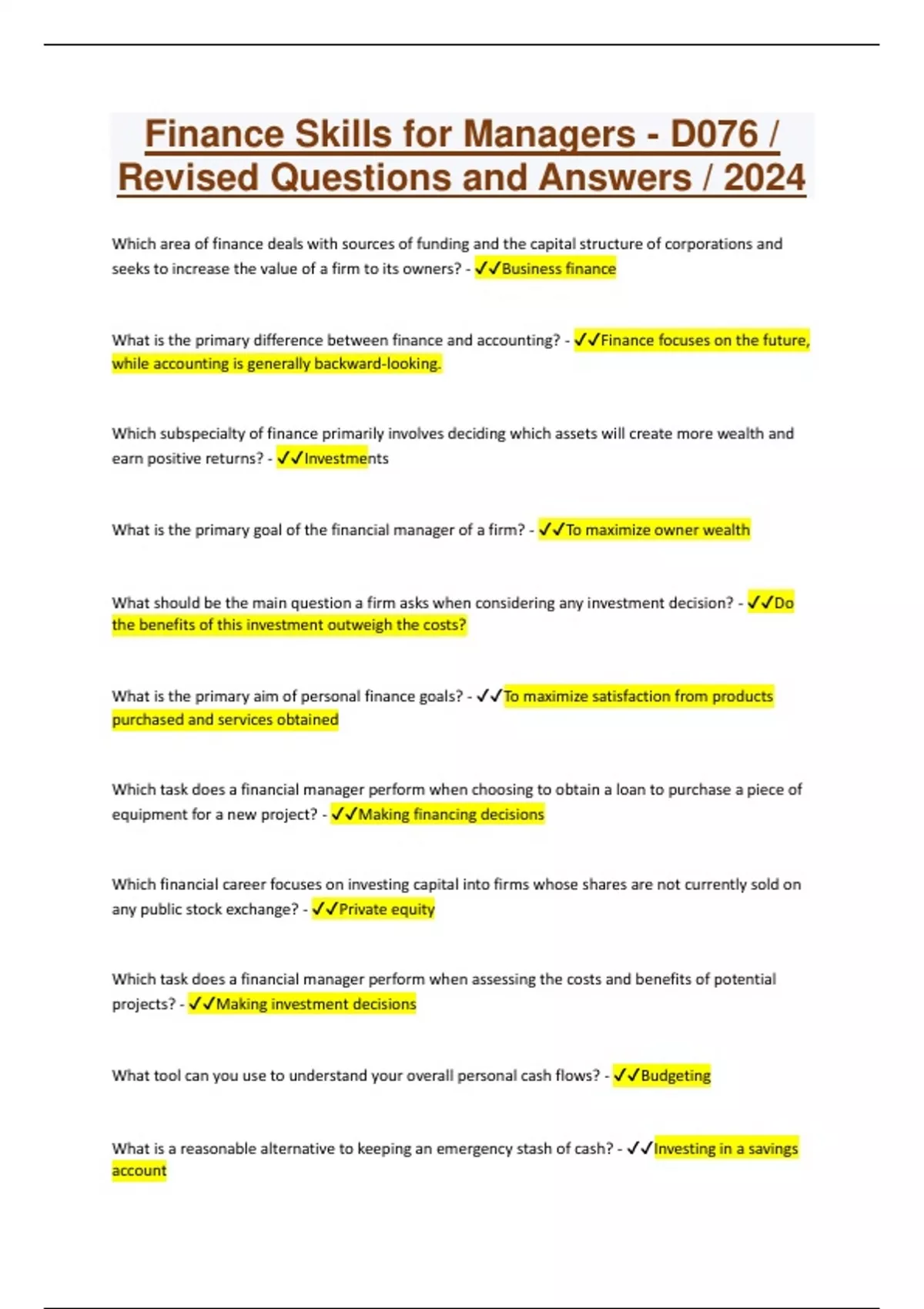 BUNDLE FOR FINACIAL SKILLS FOR MANAGERS -D076 /Q&A SURE A