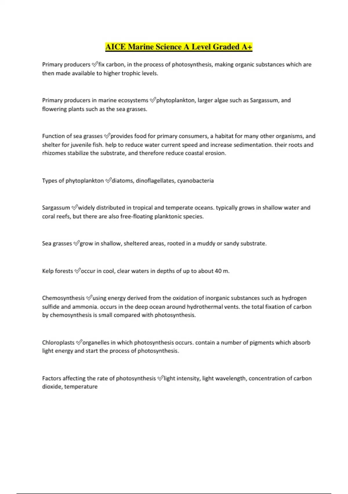 AICE Marine Science Bundle Solution With Complete Papers