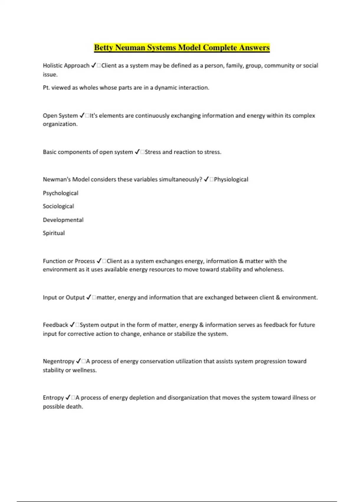Betty Neuman Systems Model Package Solution Rated A+