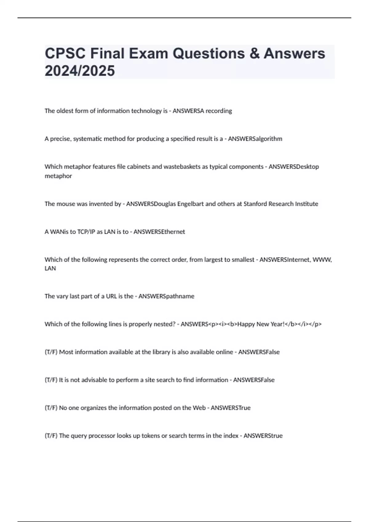 CPSC 1010 Exam 1 Questions & Answers 2024/2025