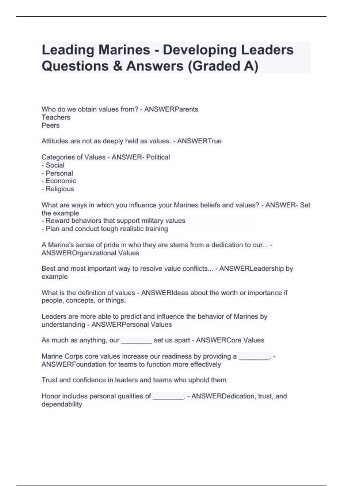 Leading Marines-Developing Leaders Exam BUNDLE| Questions and Answers 100% VerifiedLeading Marines-Developing Leaders Exam BUNDLE| Questions and Answers 100% VerifiedLeading Marines-Developing Leaders Exam BUNDLE| Questions and Answers 100% VerifiedLeading Marines-Developing Leaders Exam BUNDLE| Questions and Answers 100% VerifiedLeading Marines-De