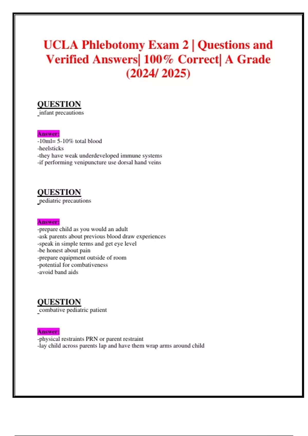 UCLA Phlebotomy Exam 2 | Questions and Verified Answers| 100% Correct| A Grade (2024/ 2025)