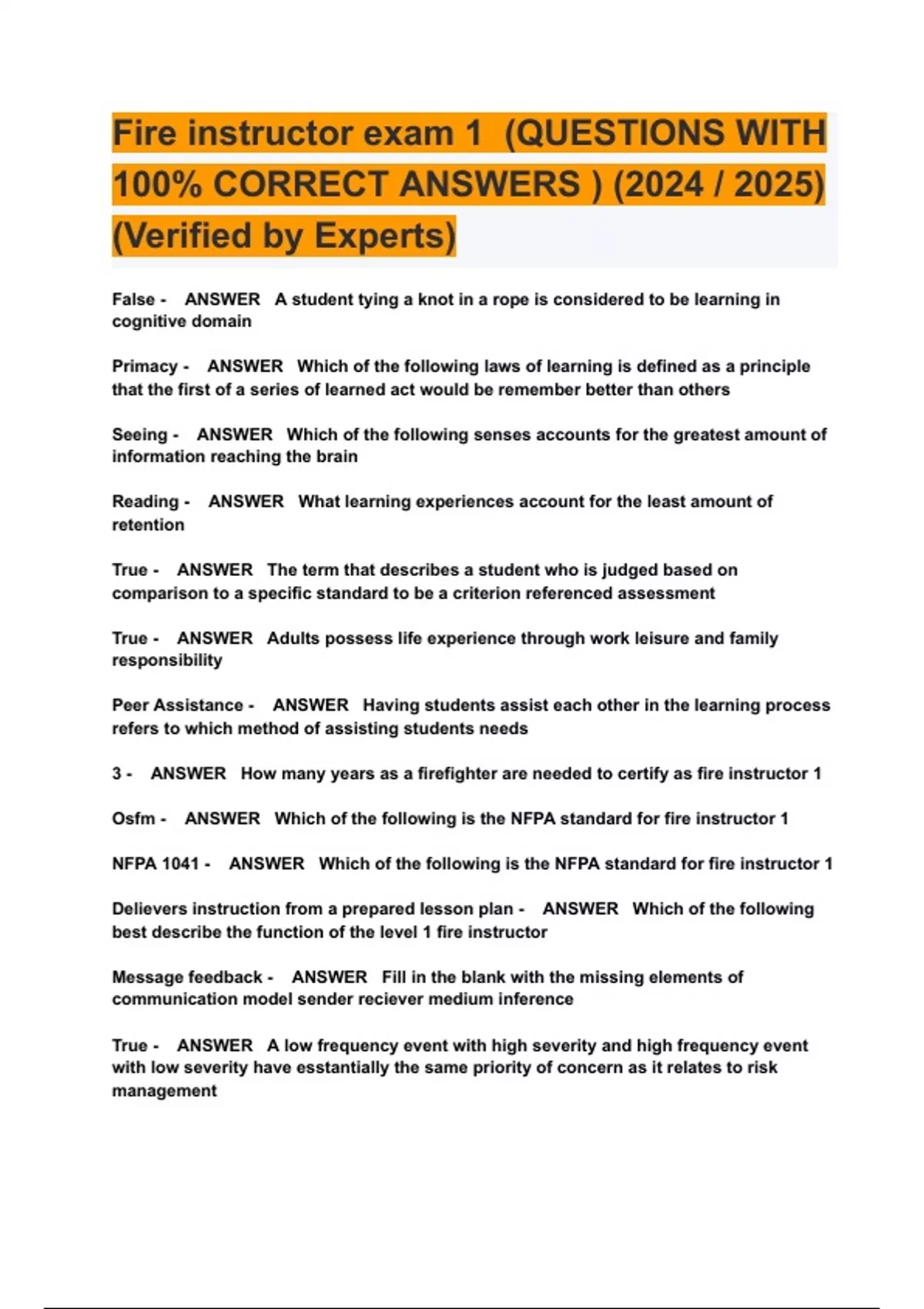 Bundle For Fire Instructor Exams || ACTUAL BUNDLE|| actual tests 2024 ( A+ GRADED 100% VERIFIED)