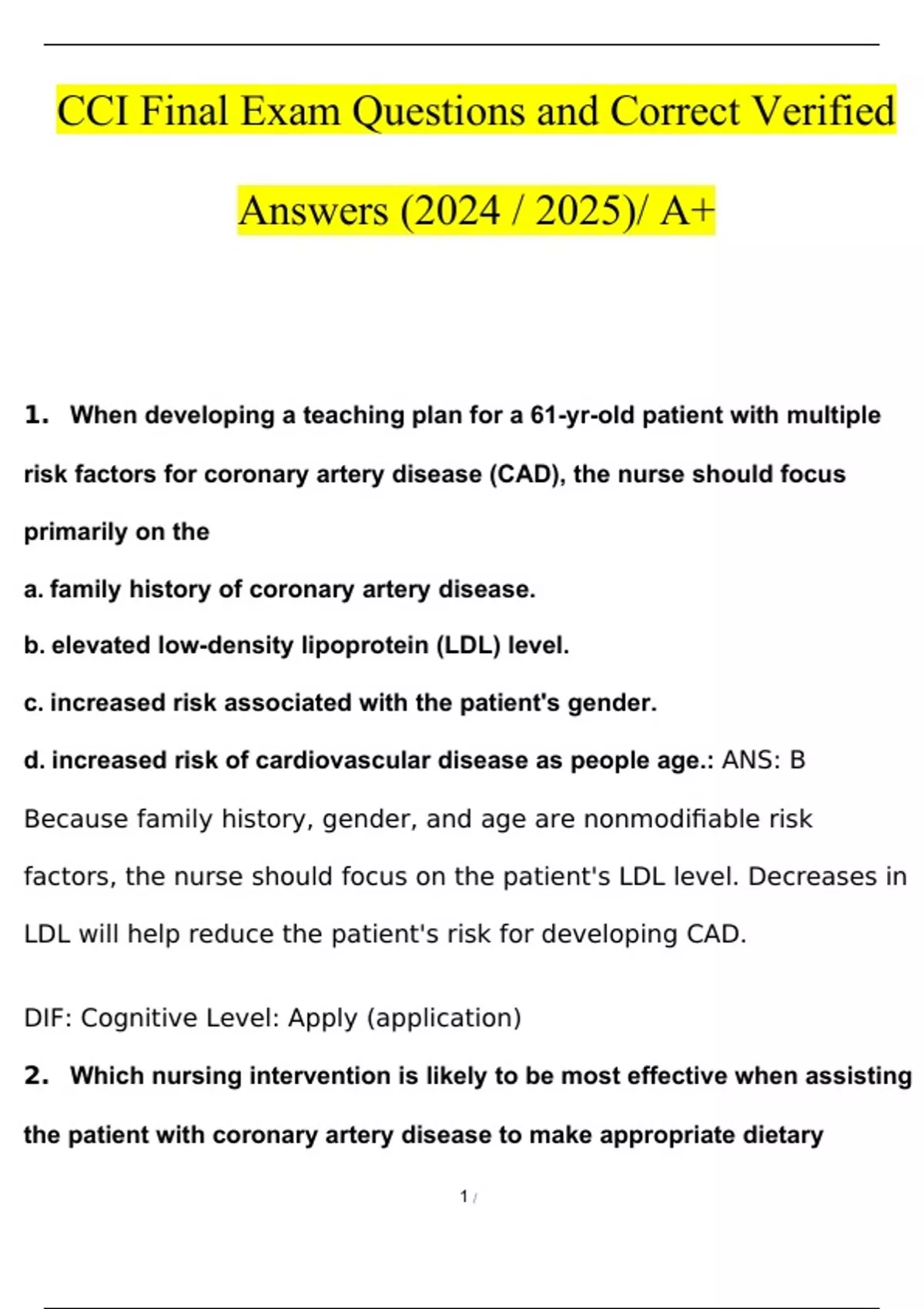 CCI Exam Questions and Verified Answers (2024 / 2025)/ A+ GRADE