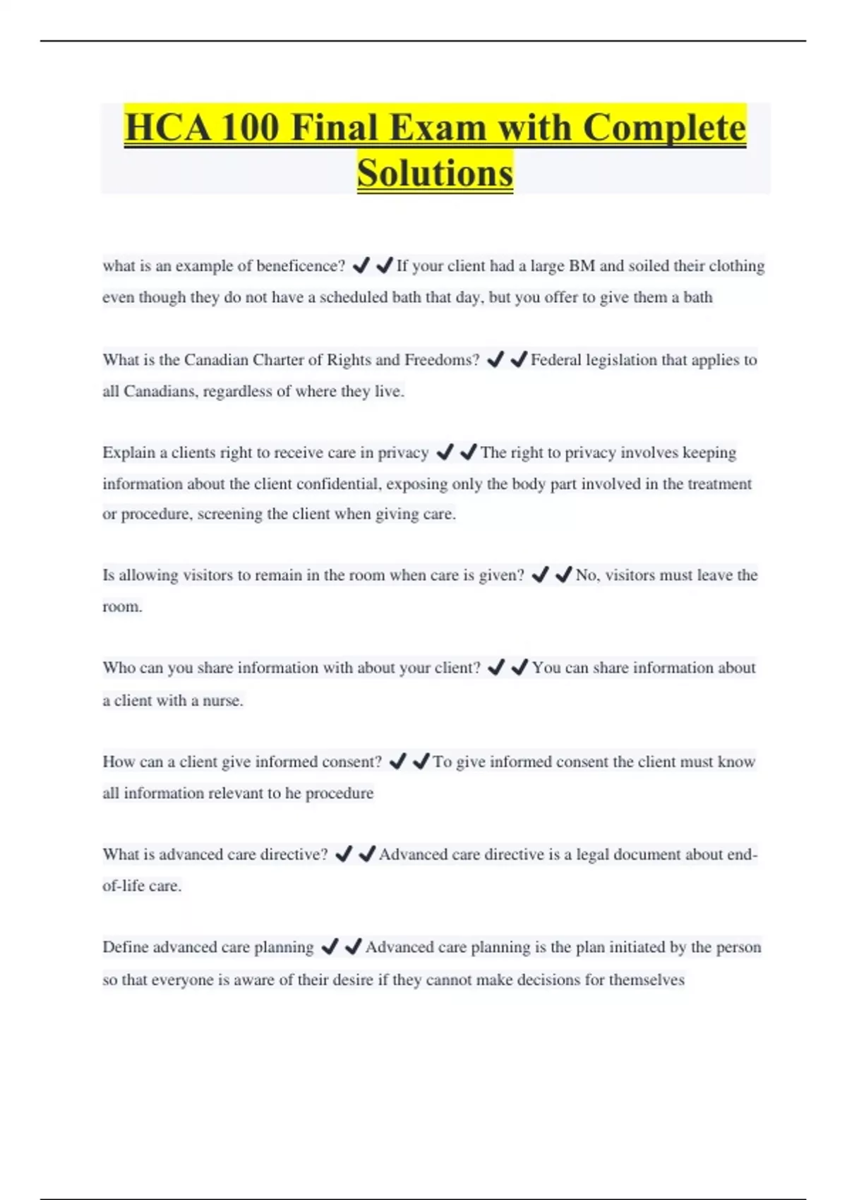 HCA 100 EXAM PACK QUESTIONS AND ANSWERS 100% SOLVED