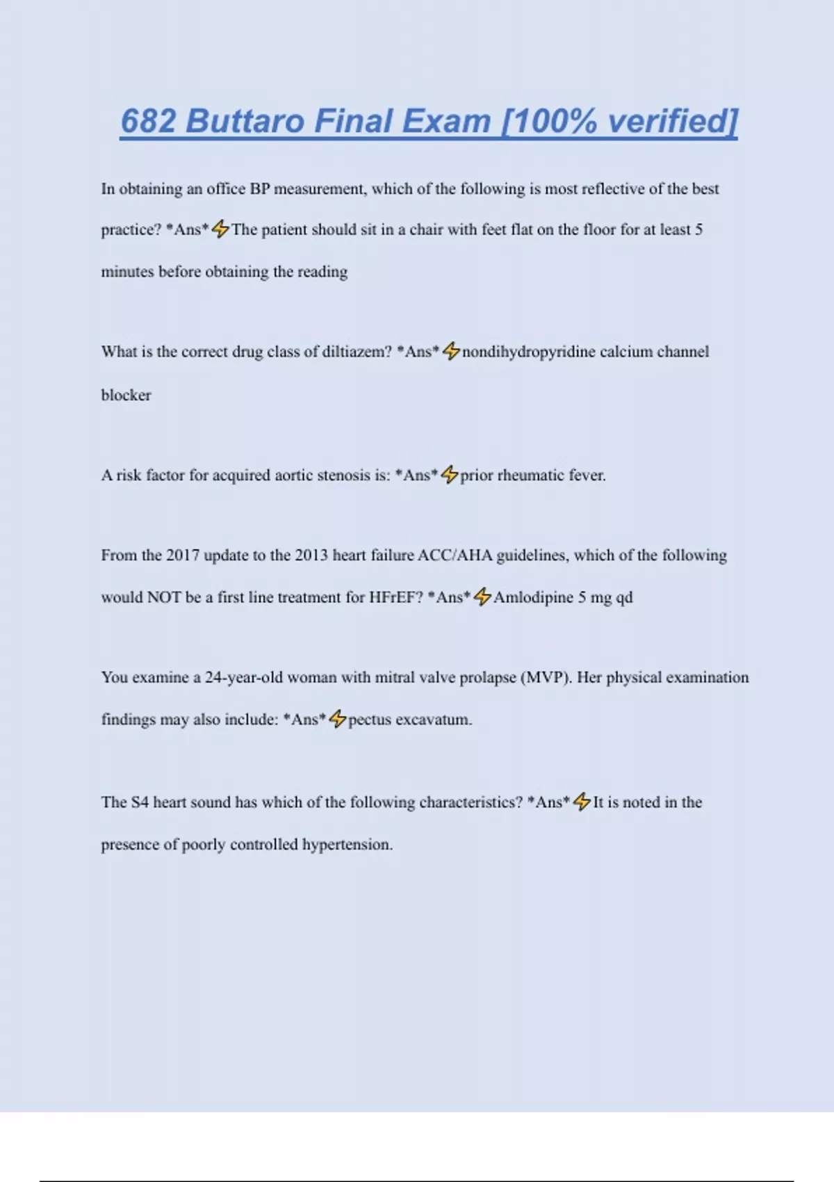 Buttaro Chapter 116 Cardiac Questions& Answers [100% verified]