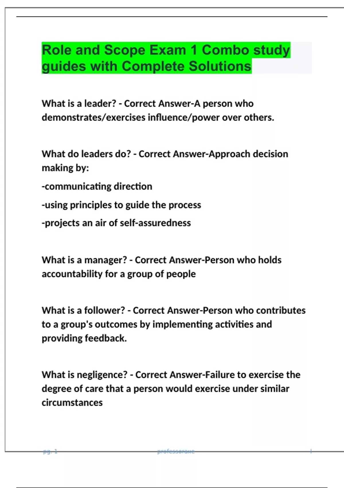 Package deal for Role and Scope Exam 1 Questions with 100% Correct Answers | Verified | Updated 2024