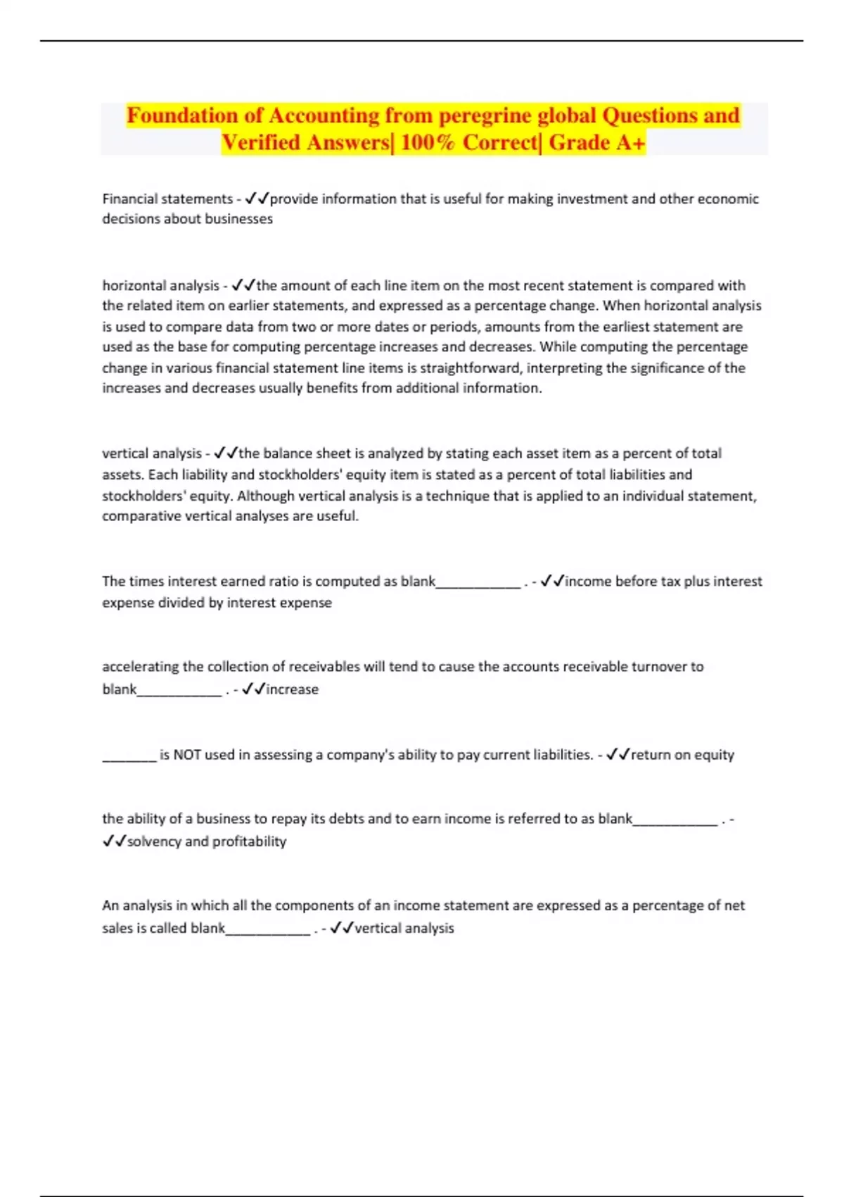 Foundation of Accounting from peregrine global Questions and Verified Answers| 100% Correct| Grade A+