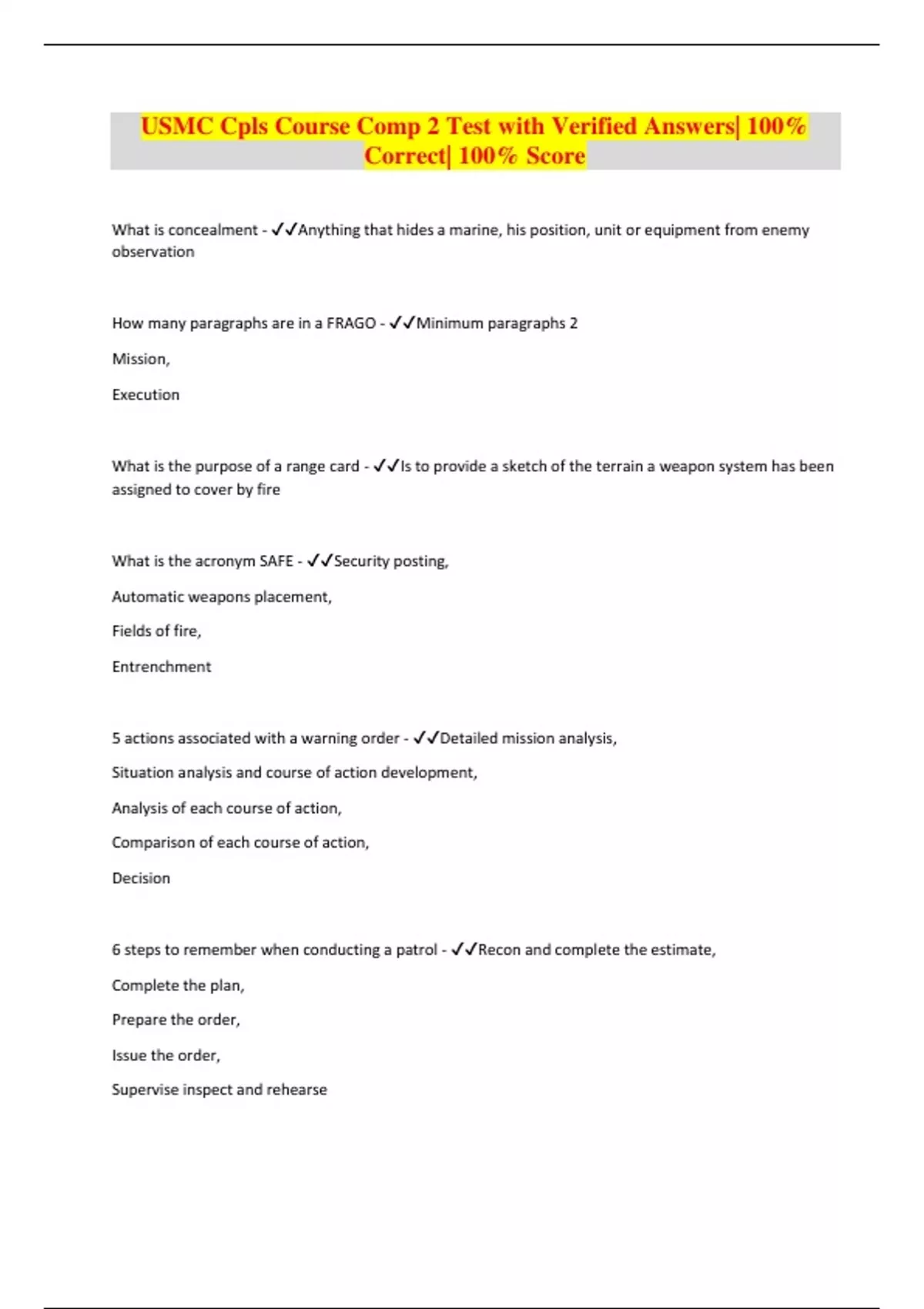 USMC Cpls Course Comp 2 Test with Verified Answers| 100% Correct| 100% Score