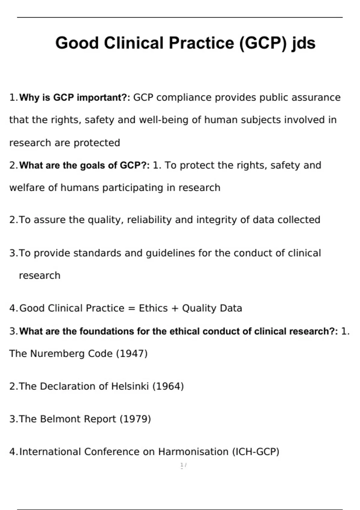 Good Clinical Practice Exams BUNDLED Good Clinical Practice (GCP) -(ICH) Good Clinical Practice (GCP) jds Good Clinical Practice Quizzes- SET 1 questions & answers 2024/2025