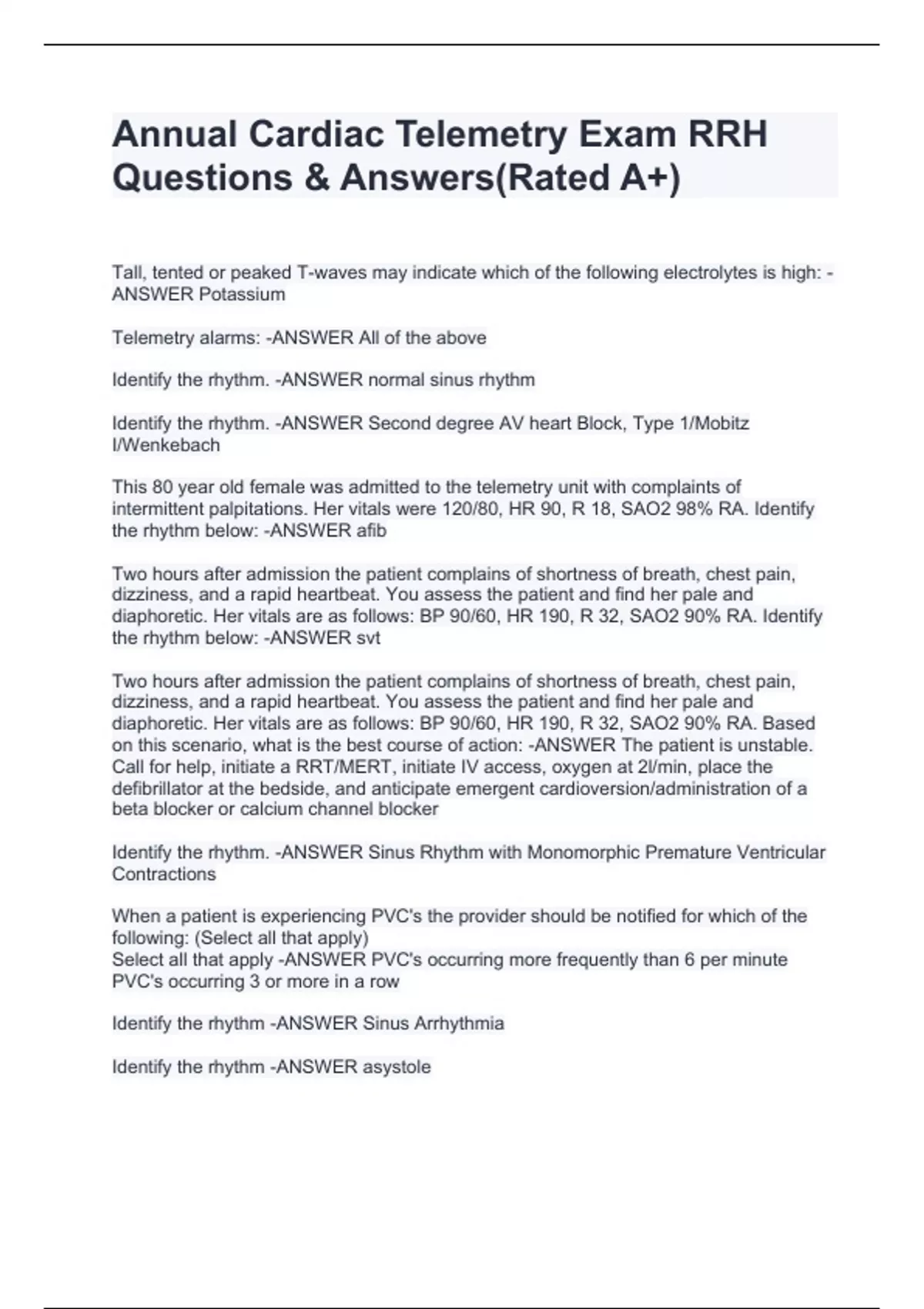 Annual Cardiac Telemetry Exam RRH Questions & Answers(Rated A+)