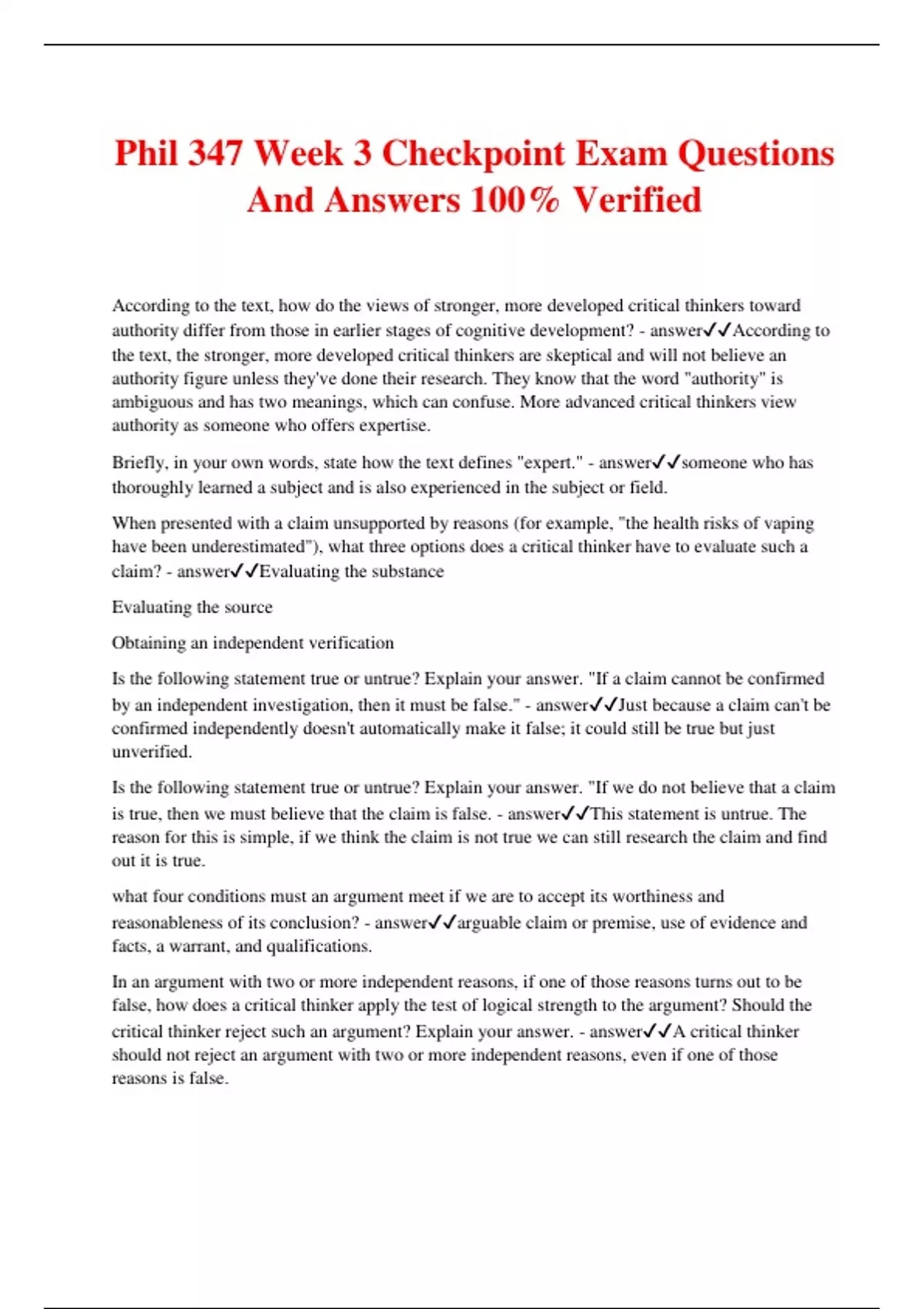 Phil 347 Week 3 Checkpoint Exam Questions And Answers 100% Verified