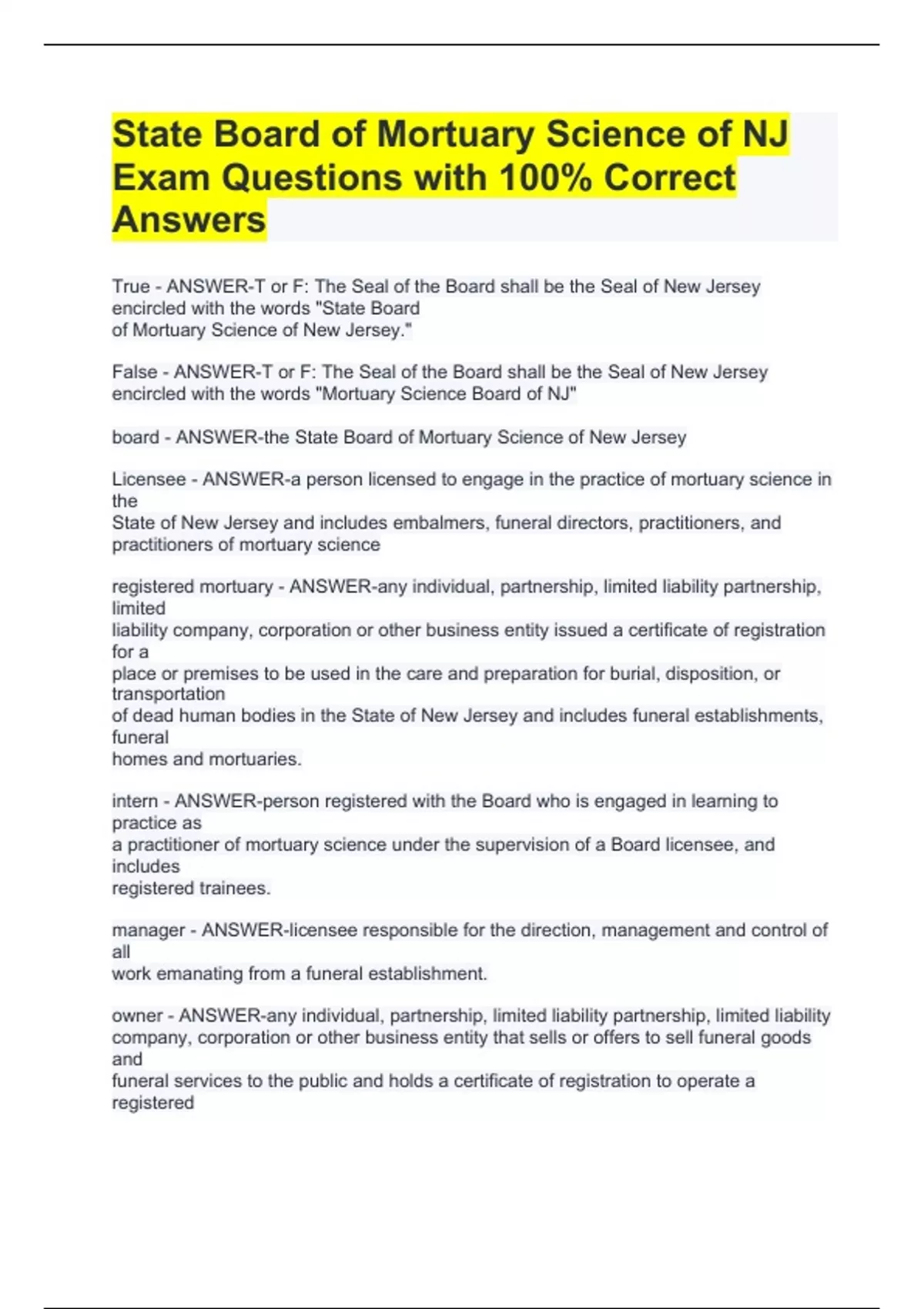 Exam (elaborations) Funeral Directing (Seminar Mortuary Science) Exam Questions with Complete Solutions Exam (elaborations) FSE 206 Principles of Mortuary Science Lecture 1 Exam Questions with Correct Answers Exam (elaborations) Embalming (Seminar Mortuary Science) Exam Questions with Latest Update Exam (elaborations) Cremation (Seminar Mort