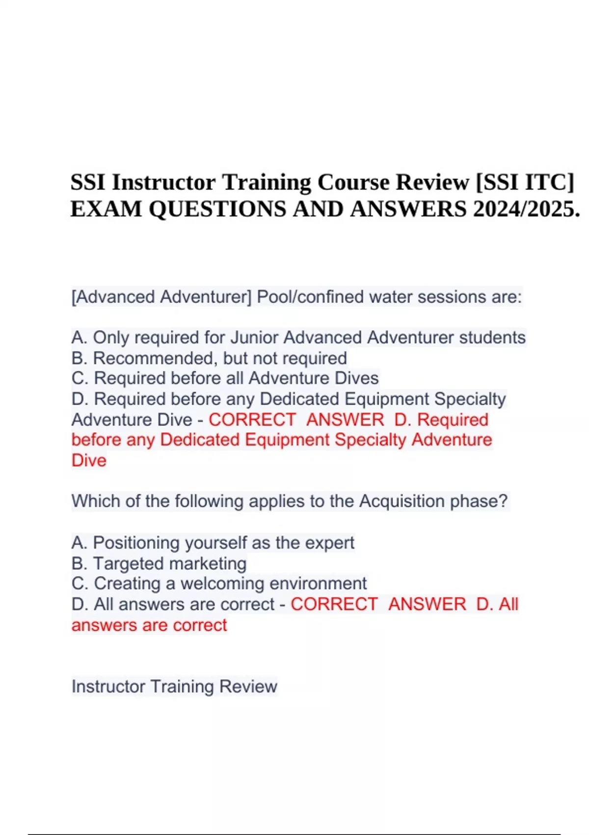 SSI ITC FINAL EXAM QUESTIONS AND CORRECT ANSWERS (VERIFIED ANSWERS) (2024/2025) ALREADY GRADED A+ & SSI Instructor Training Course Review [SSI ITC] EXAM QUESTIONS AND ANSWERS 2024/2025.