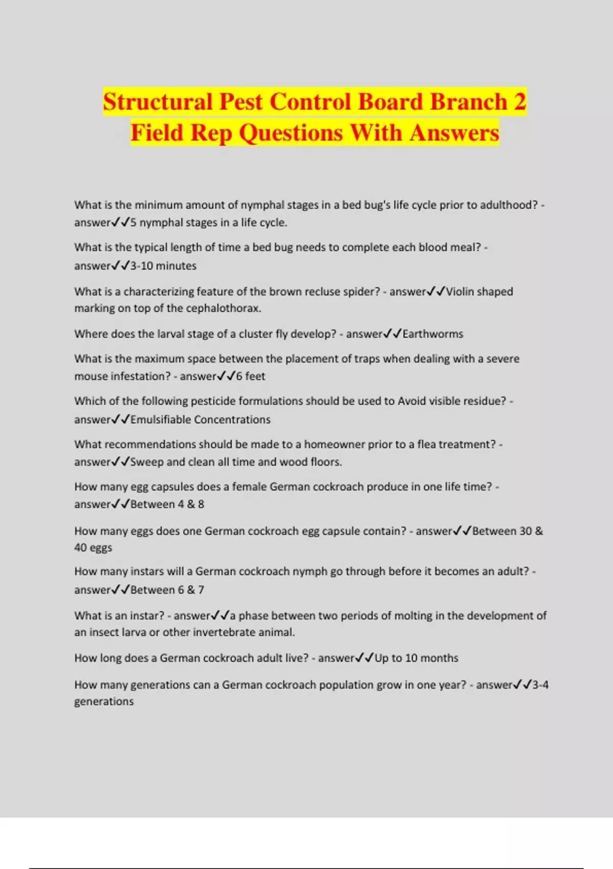 Structural Pest Control Board Branch 2 Field Rep Questions With Answers