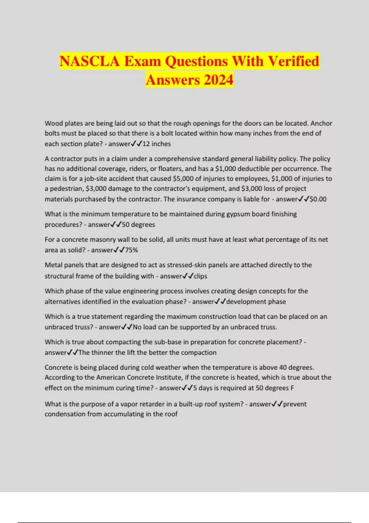 NASCLA Exam Questions With Verified Answers 2024