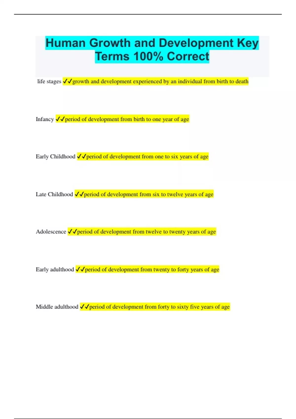 HOSA Human Growth and Development Bundled Exams Questions and Answers Already Passed