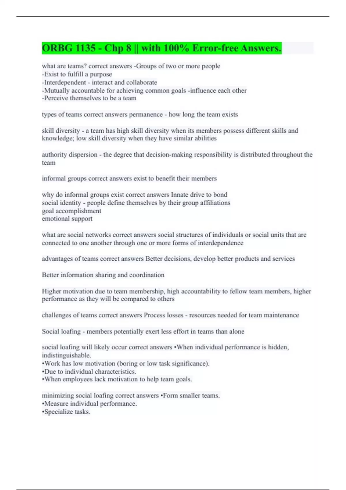 ORGB1135 || with 100% Verified Solutions. ORBG 1135 - Chp 8 || with 100% Error-free Answers. ORGB 1135 - Chp 4 || with A+ Guaranteed Solutions. ORGB 1135 Chapter 2 || very Flawless. ORGB1135 Midterm Study Guide (Chapters 1, 2, 3, 4, 8) || with 100% Correct Answers. ORGB 1135 - Chp 14 || All Answers Are Correct 100%. ORGB 1135 Final Exam || with 100