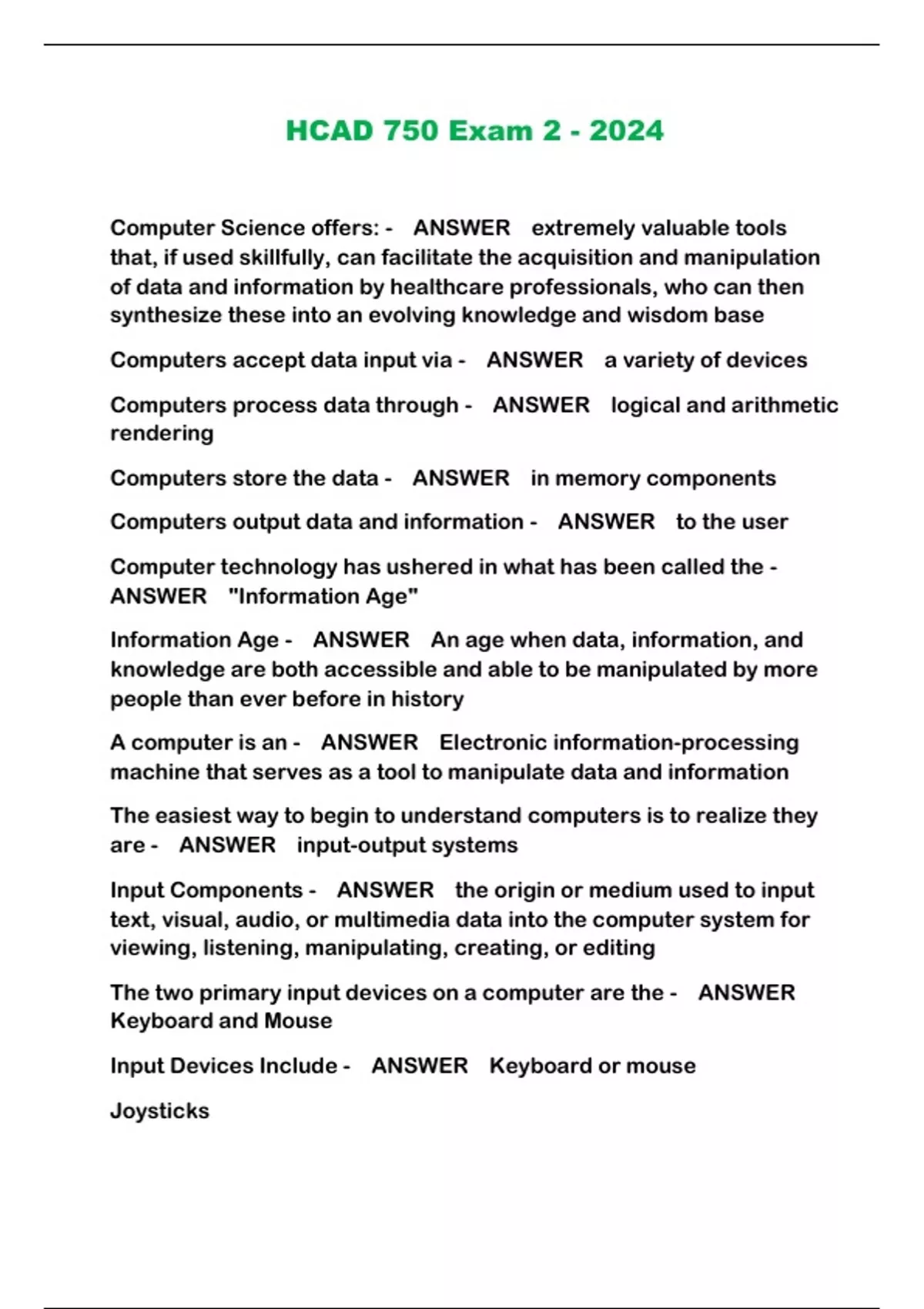 HCAD 750 PACKAGED EXAMS LATEST UPDATE