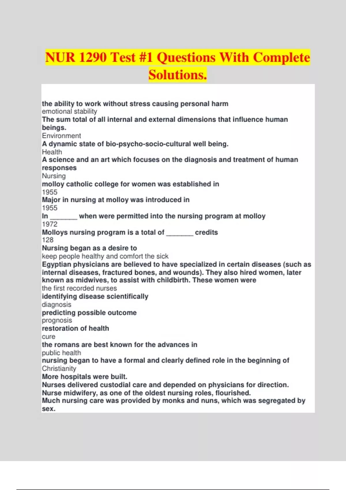 NUR 1290 Test #1 Questions With Complete Solutions.