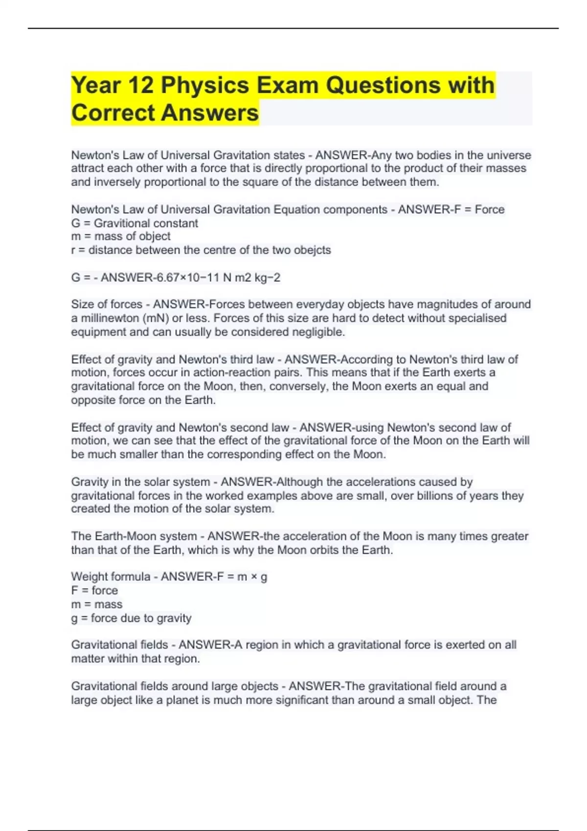 PHYSICS-General -Relatively Exam Bundle Graded A+