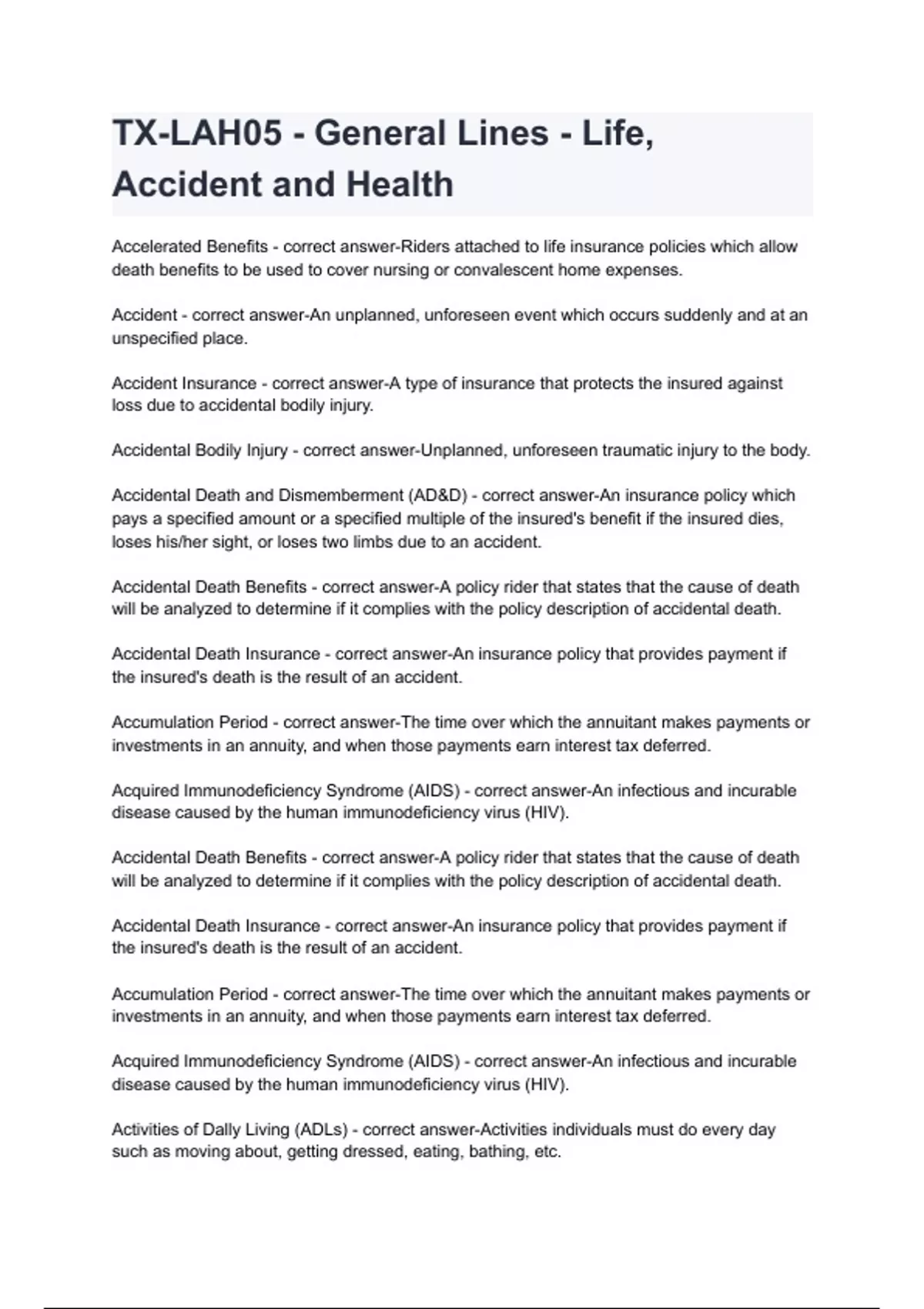 TX-LAH05 - General Lines - Life, Accident and Health questions and answers latest 2024