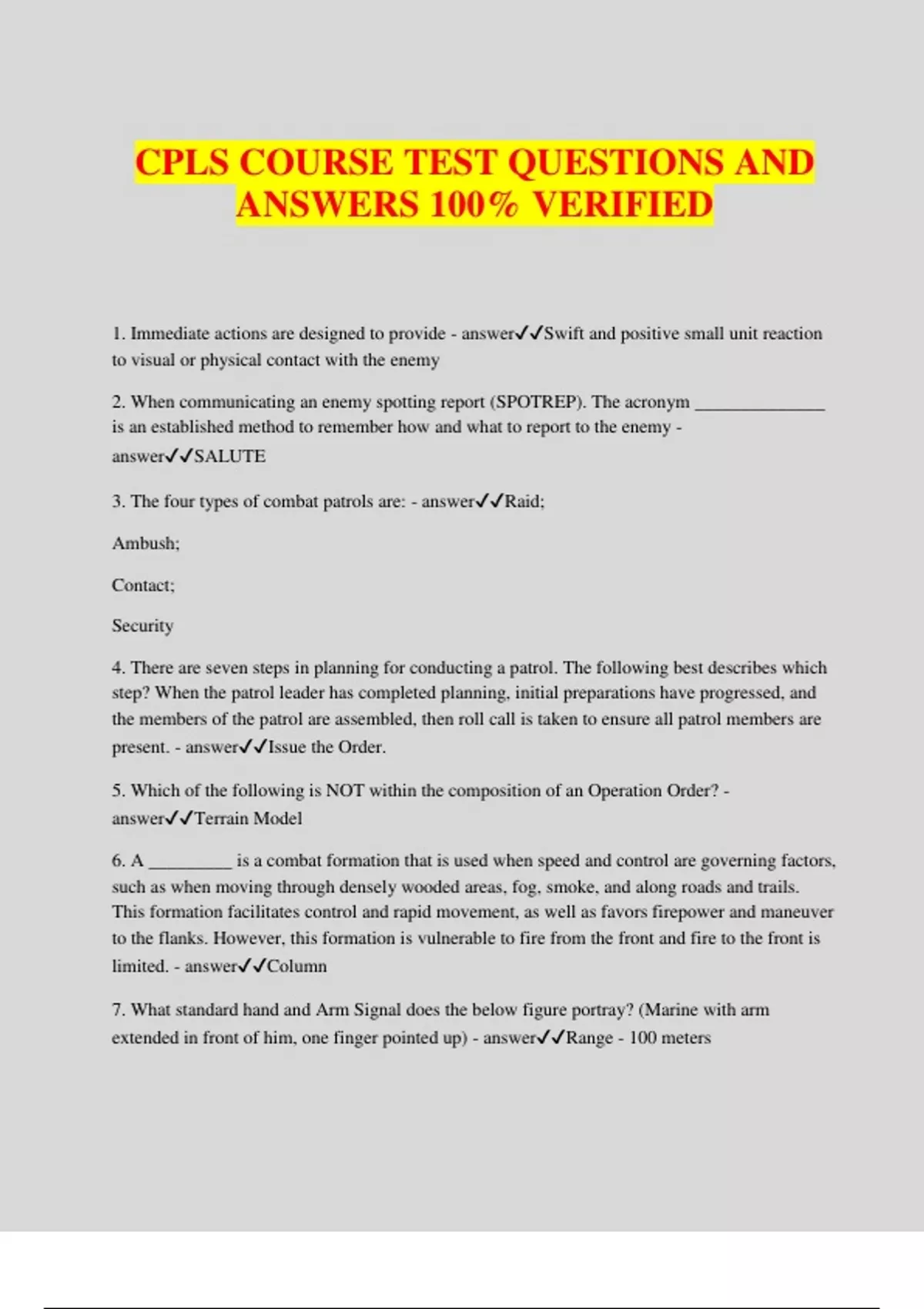 CPLS COURSE TEST QUESTIONS AND ANSWERS 100% VERIFIED
