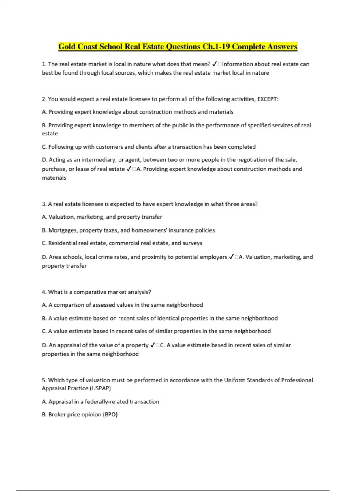 Package Deal- Gold Coast Real Estate: ALL CHAPTERS REVISED AND ANSWERED RATED A+