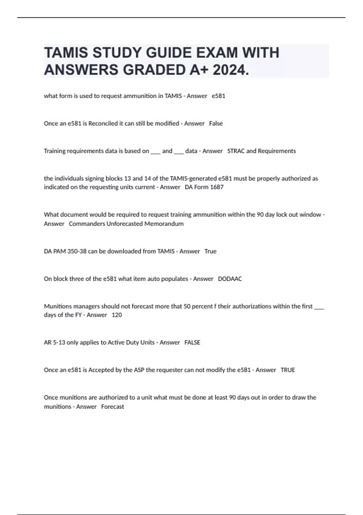 1 Exam (elaborations) Ammunition Handlers 108 Training Exam And 100% Correct Answers 2024. 2 Exam (elaborations) Class V Issue and Turn-In Procedures Revision Exam And Actual Answers 2024. 3 Exam (elaborations) HRI 106 chap 9 Latest Exam Fully Solved 2024. 4 Exam (elaborations) Principles of Food 1 Midterm Exam And Answers Rated A+ 2024. 5 Exam