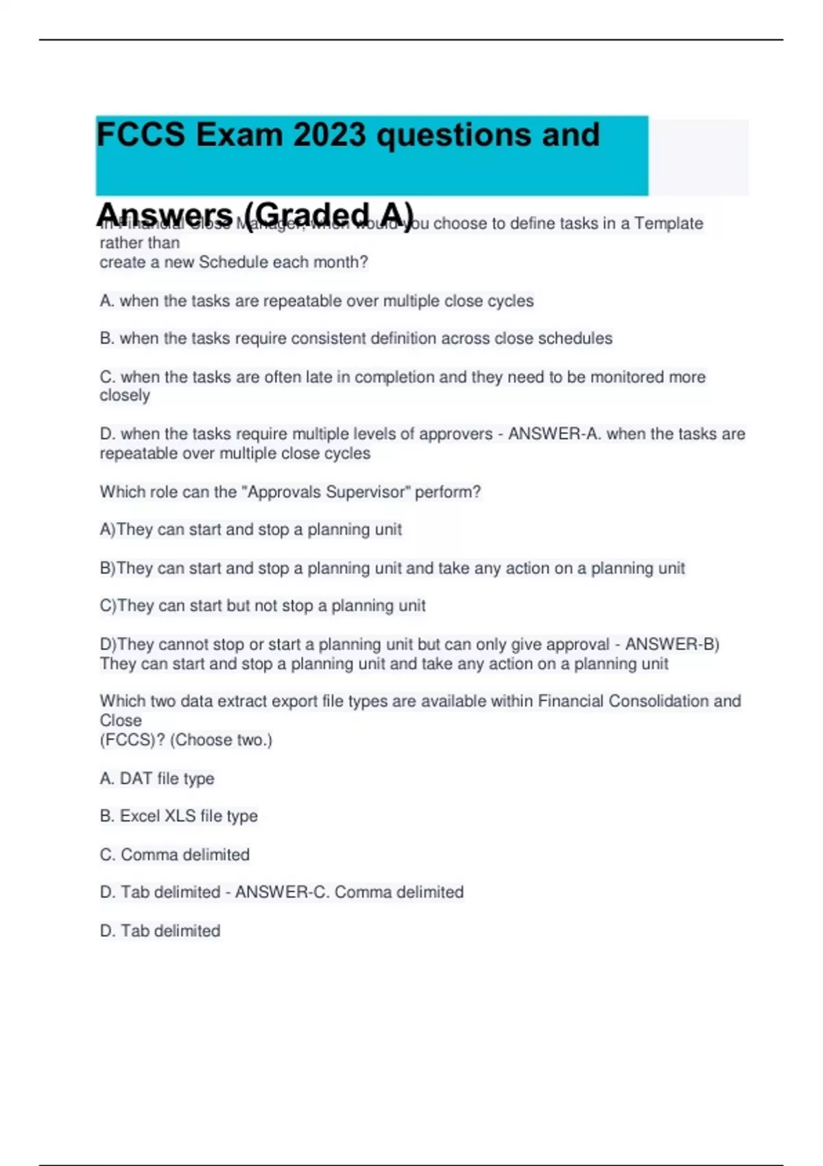 FCCS BUNDLE Exams GUIDE WITH COMPLETE LATEST QUESTIONS WITH CORRECT ANSWERS