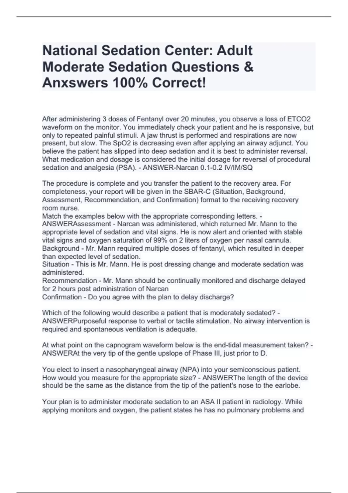 Moderate Sedation EXAM BUNDLE(COMPLETE PACKAGE)Questions & Answers 100% CorrectModerate Sedation EXAM BUNDLE(COMPLETE PACKAGE)Questions & Answers 100% CorrectModerate Sedation EXAM BUNDLE(COMPLETE PACKAGE)Questions & Answers 100% CorrectModerate Sedation EXAM BUNDLE(COMPLETE PACKAGE)Questions & Answers 100% CorrectModerate Sedation EXAM BUNDLE(COMP
