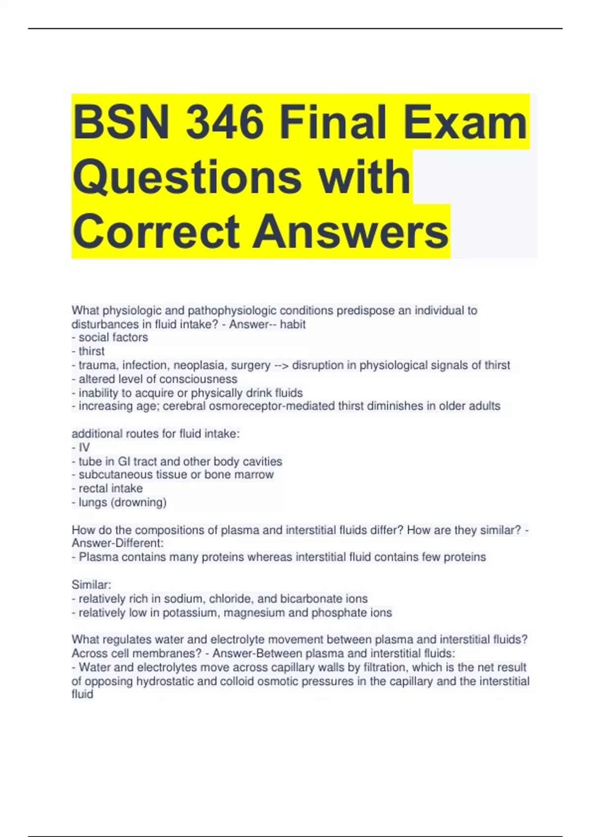 BUNDLE FOR BSN 346 PRACTICE HESI Exam Questions with Correct Answers