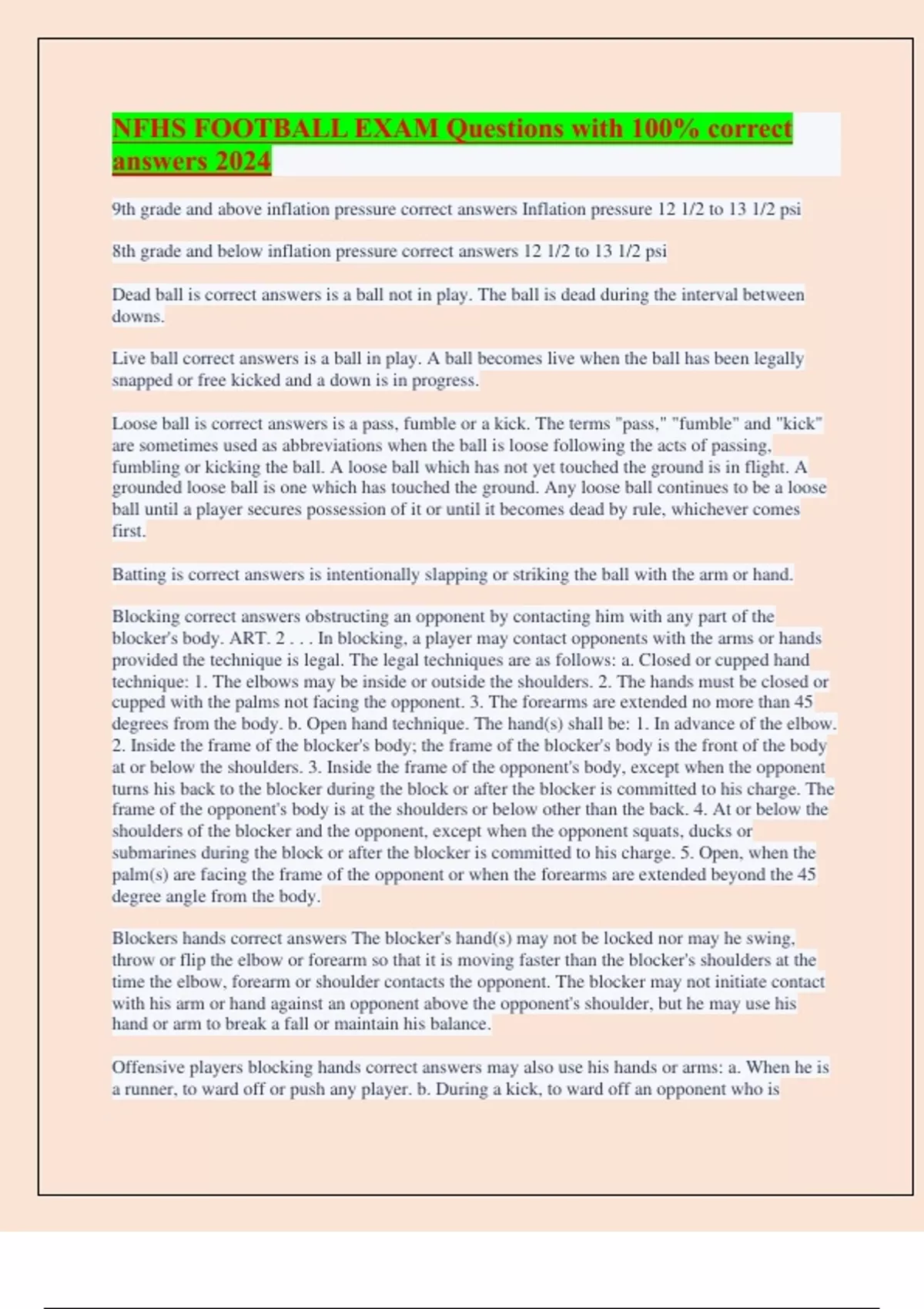 NFHS FOOTBALL EXAM Questions with 100% correct answers 2024
