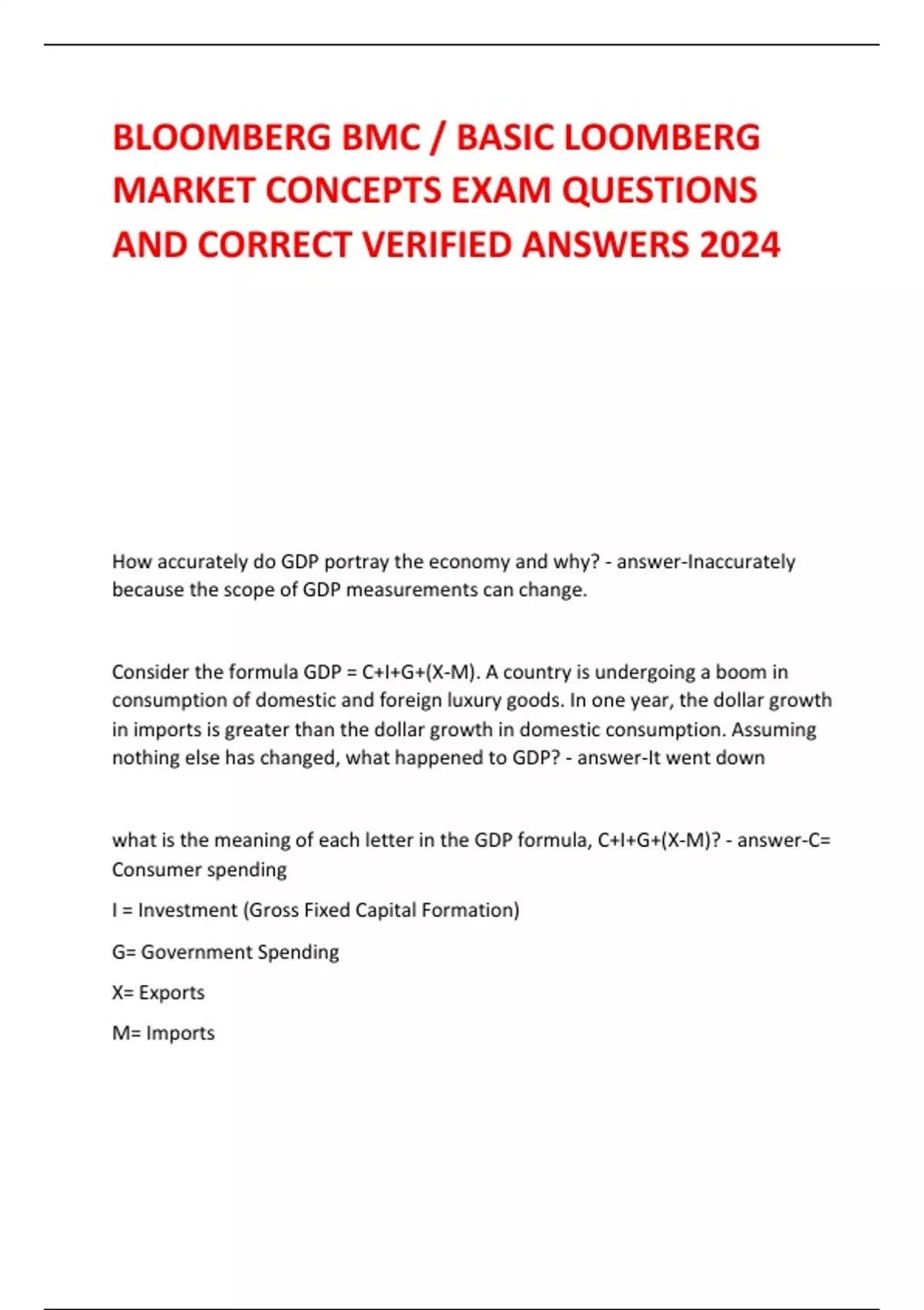 BMC SERVICEWIDE FINAL EXAM ,BOEALPS EXAM 2 Boeing Employees Alpine Society Basic Mountaineering Class (BMC) ,BOEALPS FINAL EXAM Boeing Employees Alpine Society Basic Mountaineering Class (BMC) FINAL EXIT ,BMC BLOOMBERG MARKET CONCEPTS,BLOOMBERG BMC / BASIC BLOOMBERG MARKET CONCEPTS EXAM QUESTIONS AND CORRECT VERIFIED ANSWERS LATEST UPDATE