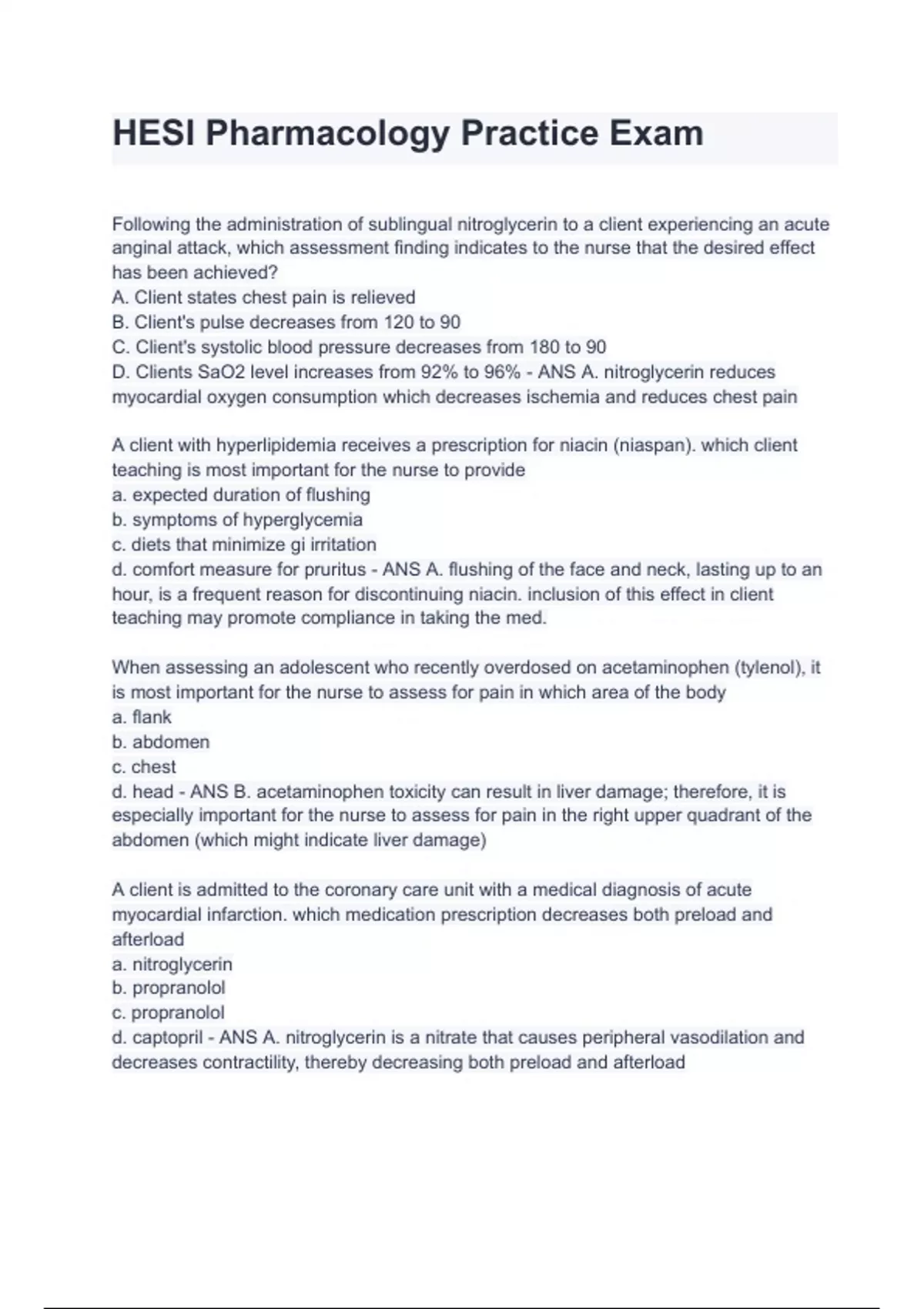 HESI Pharmacology Practice Exam 2024/2025 Questions With Completed Solutions. ALL BUNDLED HERE!!!